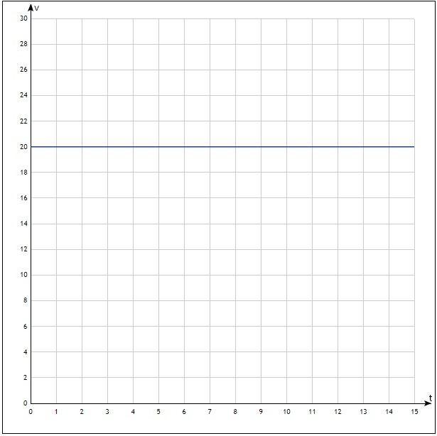 Графиком зависимости v(t) - v = 20 - является прямая, проходящая через точку (0; 20) и параллельная оси Ох, так как скорость является постоянной величиной в данной задаче.