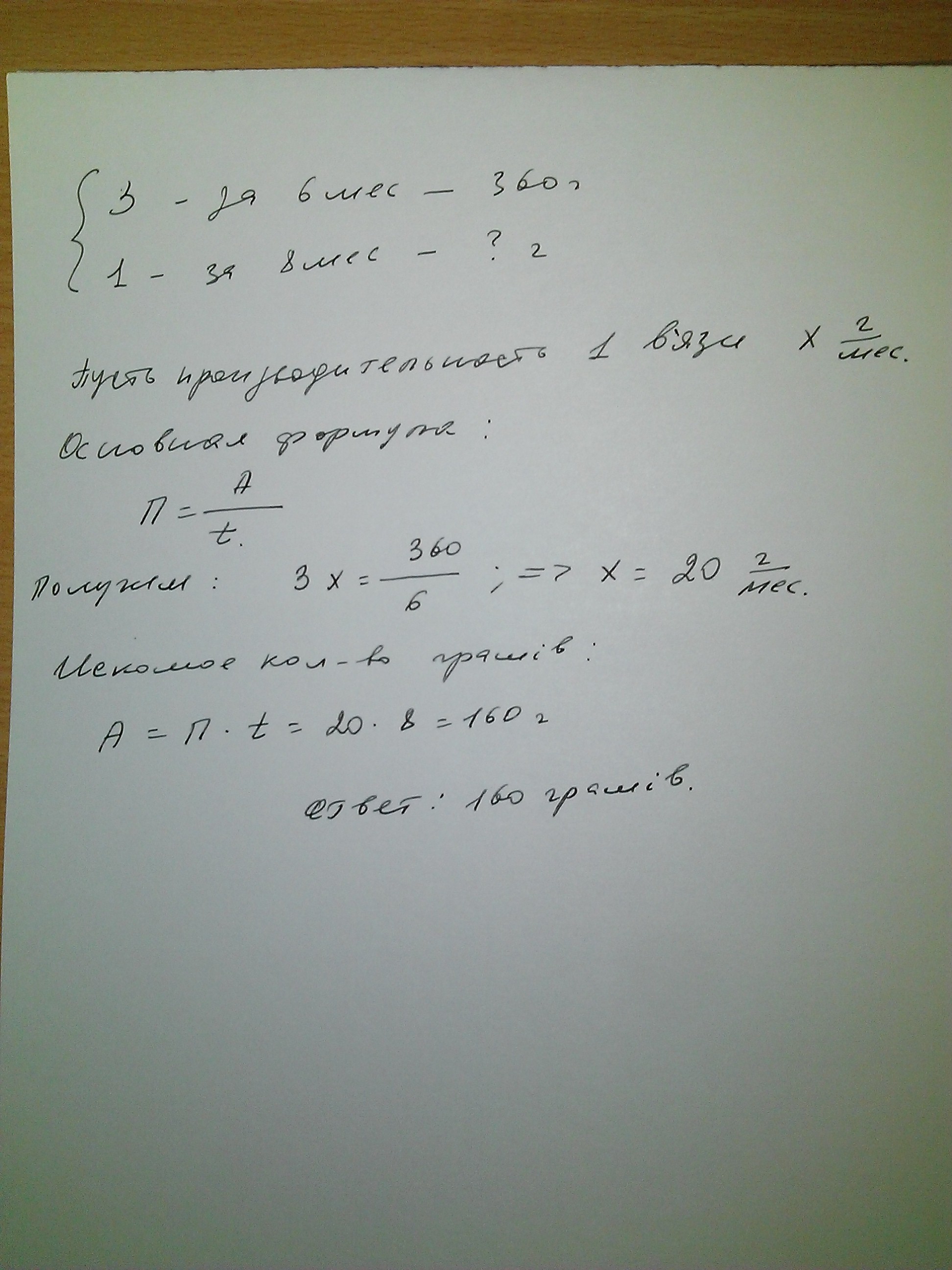 Три в`язи за 6 місяців поглинають з повітря 360г шкідливих газів.Скільки грамів шкідливих газів поглинає один в`яз за 8 місяців?