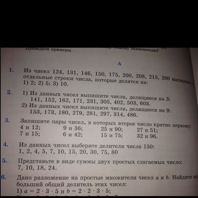 Ответ: 4 и 12; 9 и 36; 6 и 42; 15 и 75; 32 и 96.