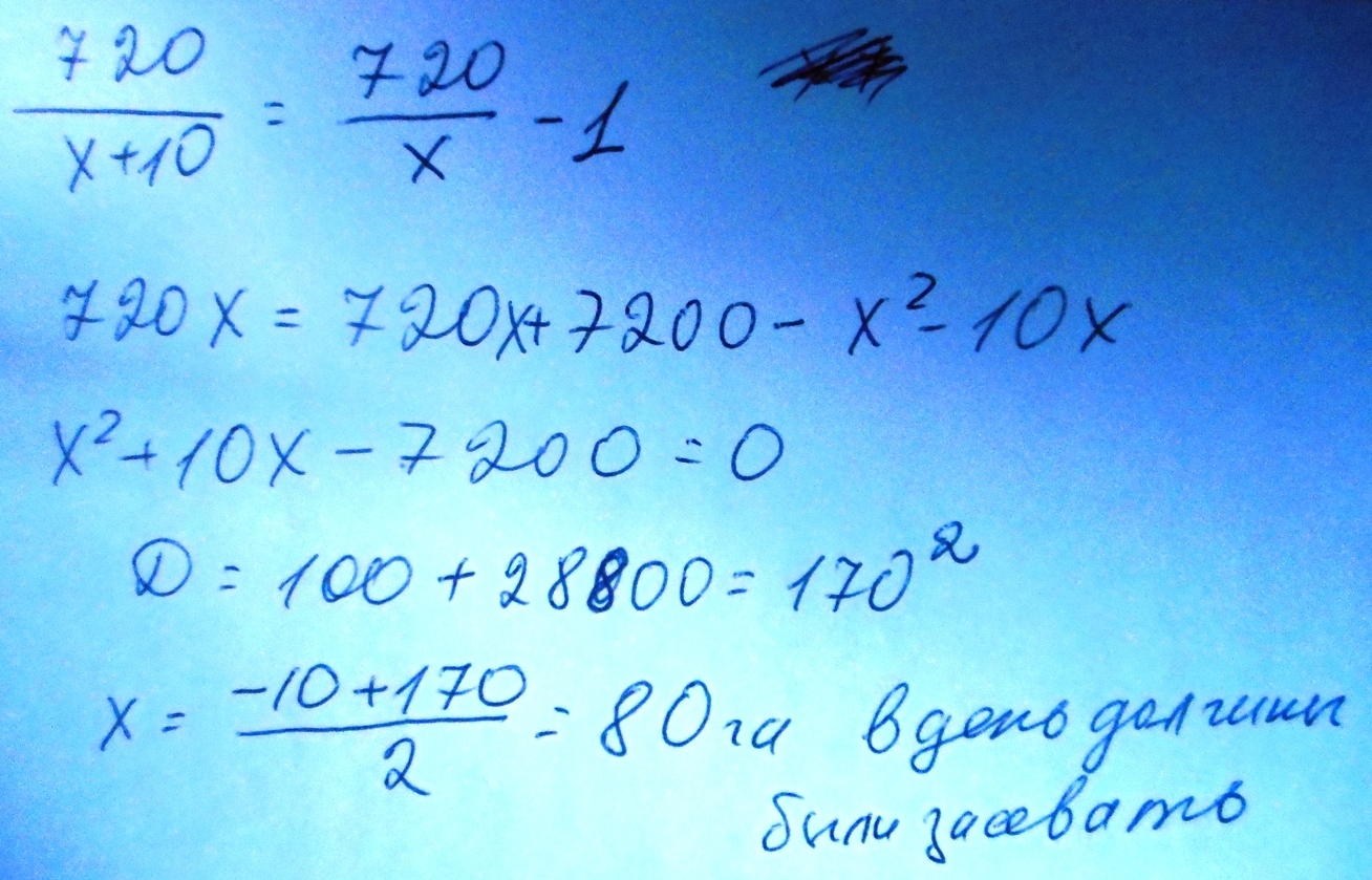 Брирада повинна була задіяти 720 на поля. Засіваючи щодня на 10 на більше, вона завершила сівбу на один день раніше, ніж планувалося. Скільки гектарів поля повинна була засівати бригада щодня?
