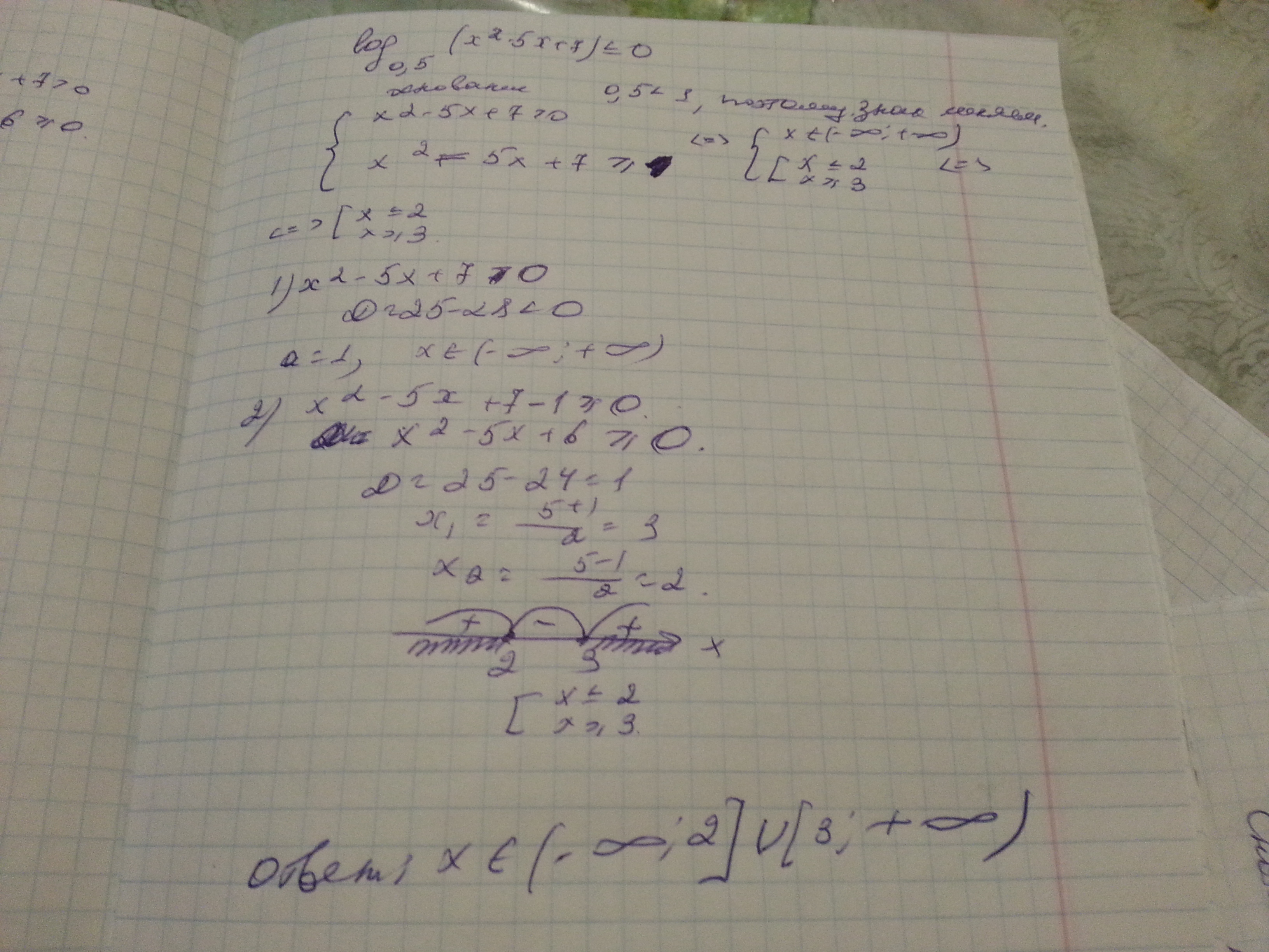 {x²-5x+7≥1⇒x²-5x+6≥0⇒(x-3)(x-2)≥0⇒x≤2 U x≥3
