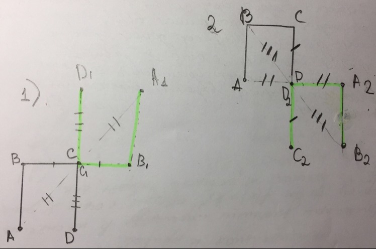 постройте фигуру, симметричную ломаный ABCD (рис 3) относительно.1)точки C 2)точки D