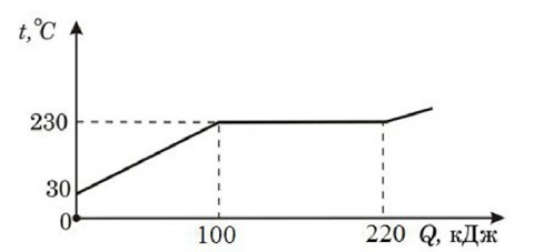 На рисунке представлен график зависимости температуры от полученного количества теплоты в процессе нагревания