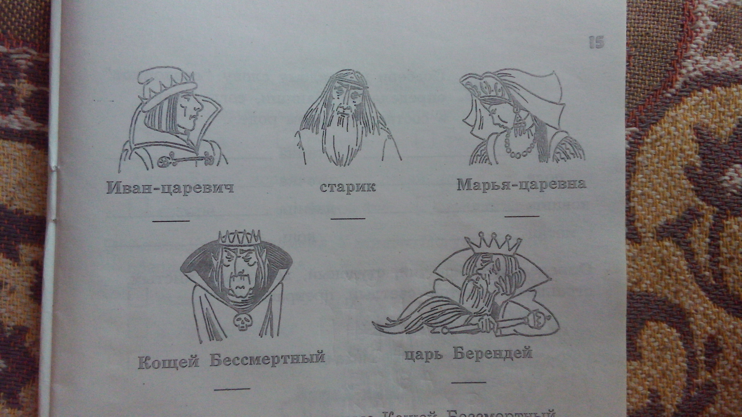 Иван-Царевич(+), старик([]), Марья-царевна(+), Кощей Бессмертный(-), царь Берендей(н).