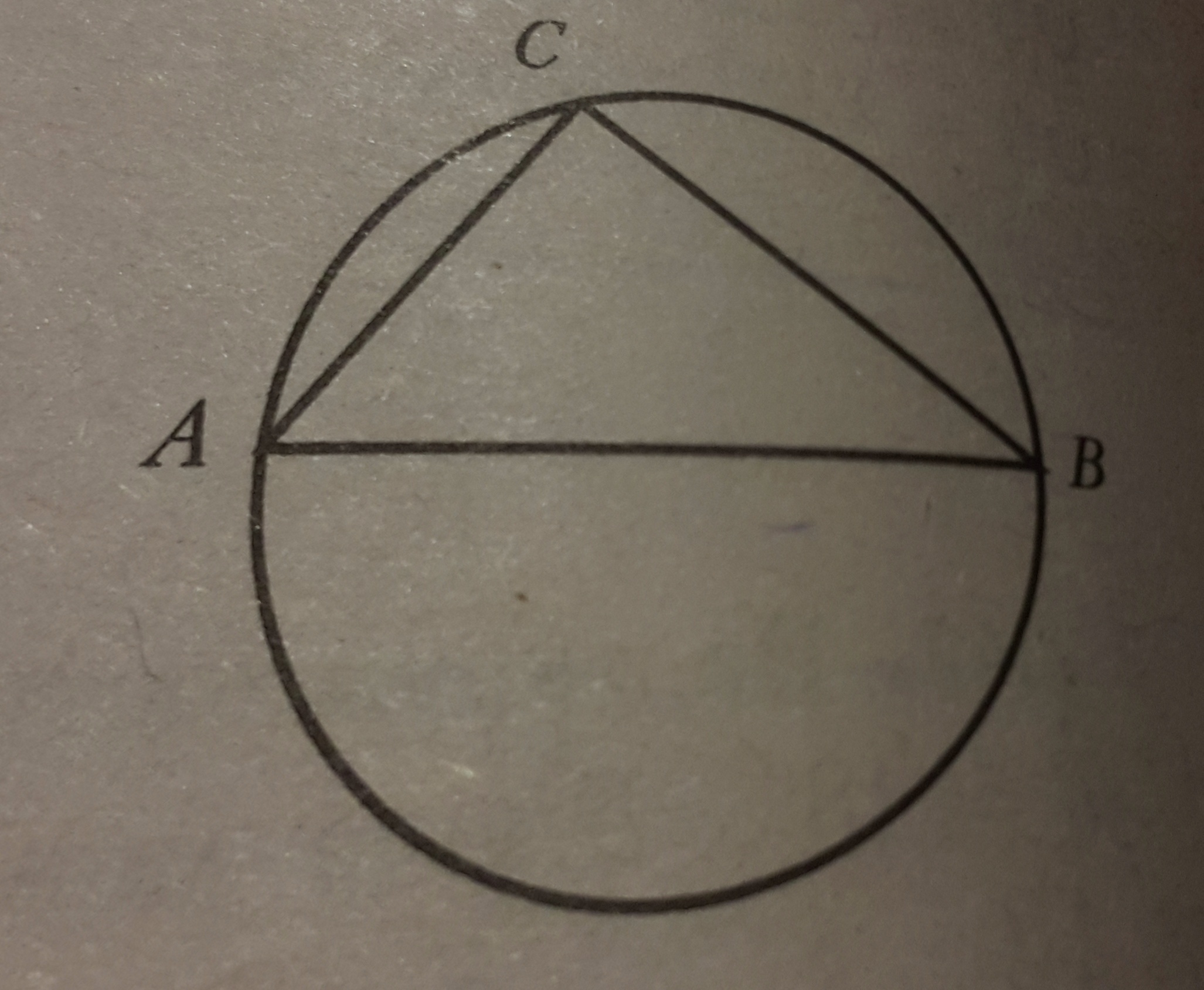 В таком случае сторона AB является диаметром описанной окружности, а ΔACB - прямоугольный, т.к. ∠С - вписанный, опирающийся на диаметр.