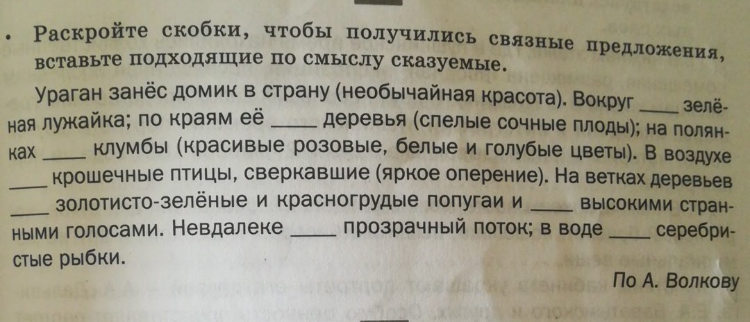 Ураган занёс домик в страну грёз. Вокруг благоухает зелёная лужайка; по краям её красуются деревья груши; на полянках цветут клумбы роз, ромашек и васильков. В воздухе порхают крошечные птицы, сверкавшие бликом перьев. На ветках деревьев уселись золотисто-зеленые и красногрудые попугаи и чирикают высокими странными голосами. Невдалеке дует прозрачный поток; в воде переливаются серебристые рыбки.