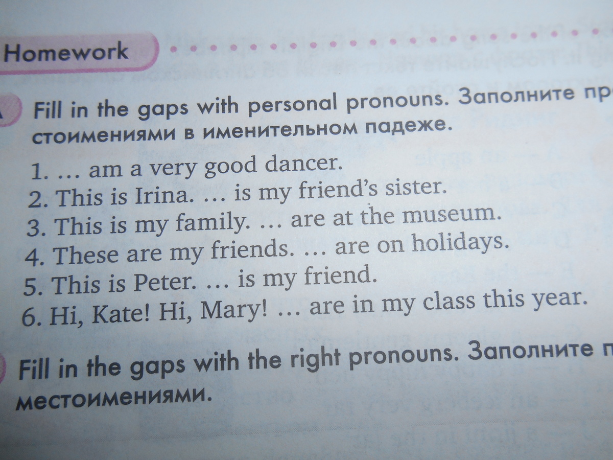 1Заполните пропуски личными местоимениями в именительном падеже 2 Заполните пропуски подходящими местоимениями