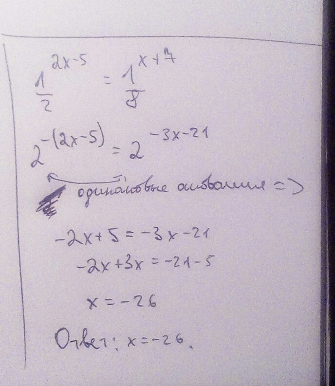 двойки - одинаковые основания, следовательно дальше работаем с показателями