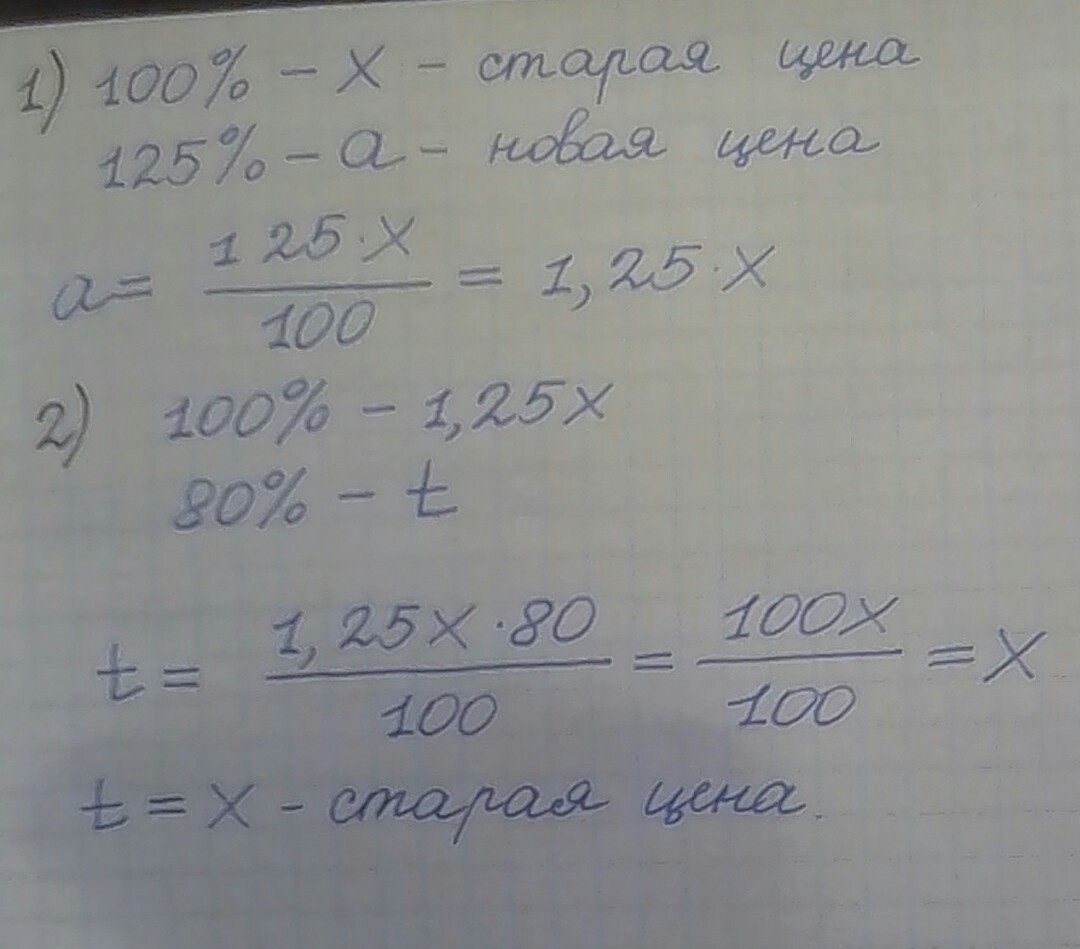 Стало 1,25х - 0,2 * 1,25х = 1,25х - 0,25 = х