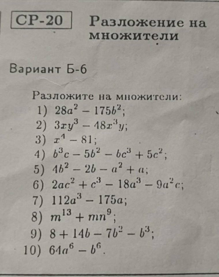 ▪1) 28a^2 - 175b^2 = 7(4a^2 - 25b^2) = 7(2a - 5b)(2a + 5b)