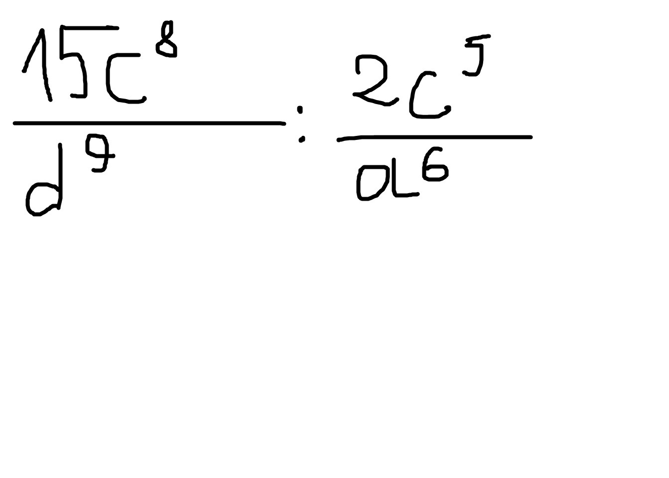 15с^8*a^6/2c^5*d^9= 15c^3 a^6/2d^9 (8-5 - при делении показатели вычитают)