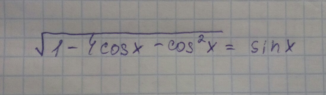 √( 1- 4cos x - cos^2(квадрат) x ) = sin x, подносим к квадрату( избавляемся от корня), и у нас выходит: 1- 4cos x - cos^2 x= sin^2 x;
