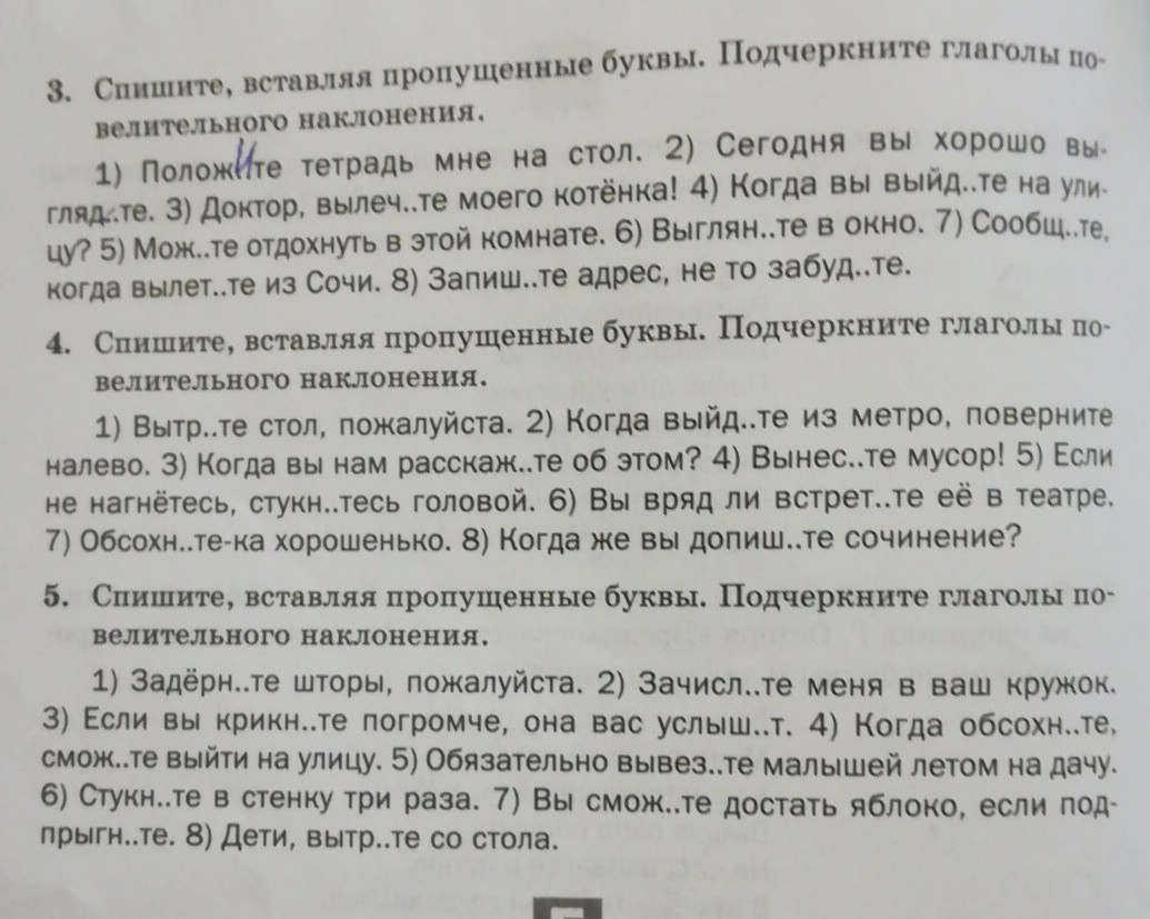 Вытрете стол пожалуйста.Когда выйдете из метро, поверните налево.Когда вы нам расскажите об этом?Вынесете мусор!Если не нагнётесь, стукнетесь головой.Вы вряд ли встретите её в театре.Обсохните-ка хорошенько.Когда же вы допишите сочинение?