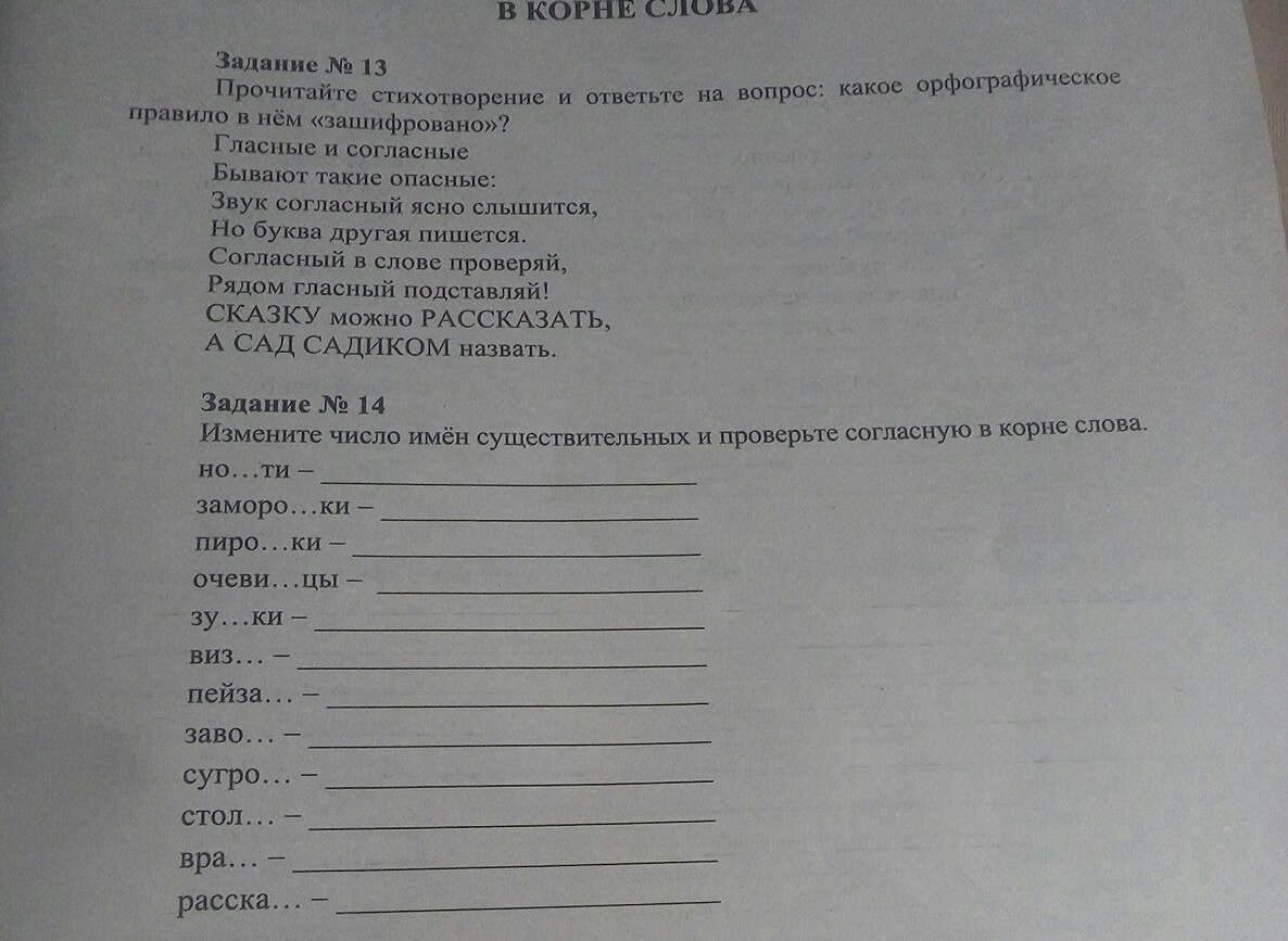 13. Согласные в корне слова, которые проверяются словом, где после нужного нам согласного стоит гласная