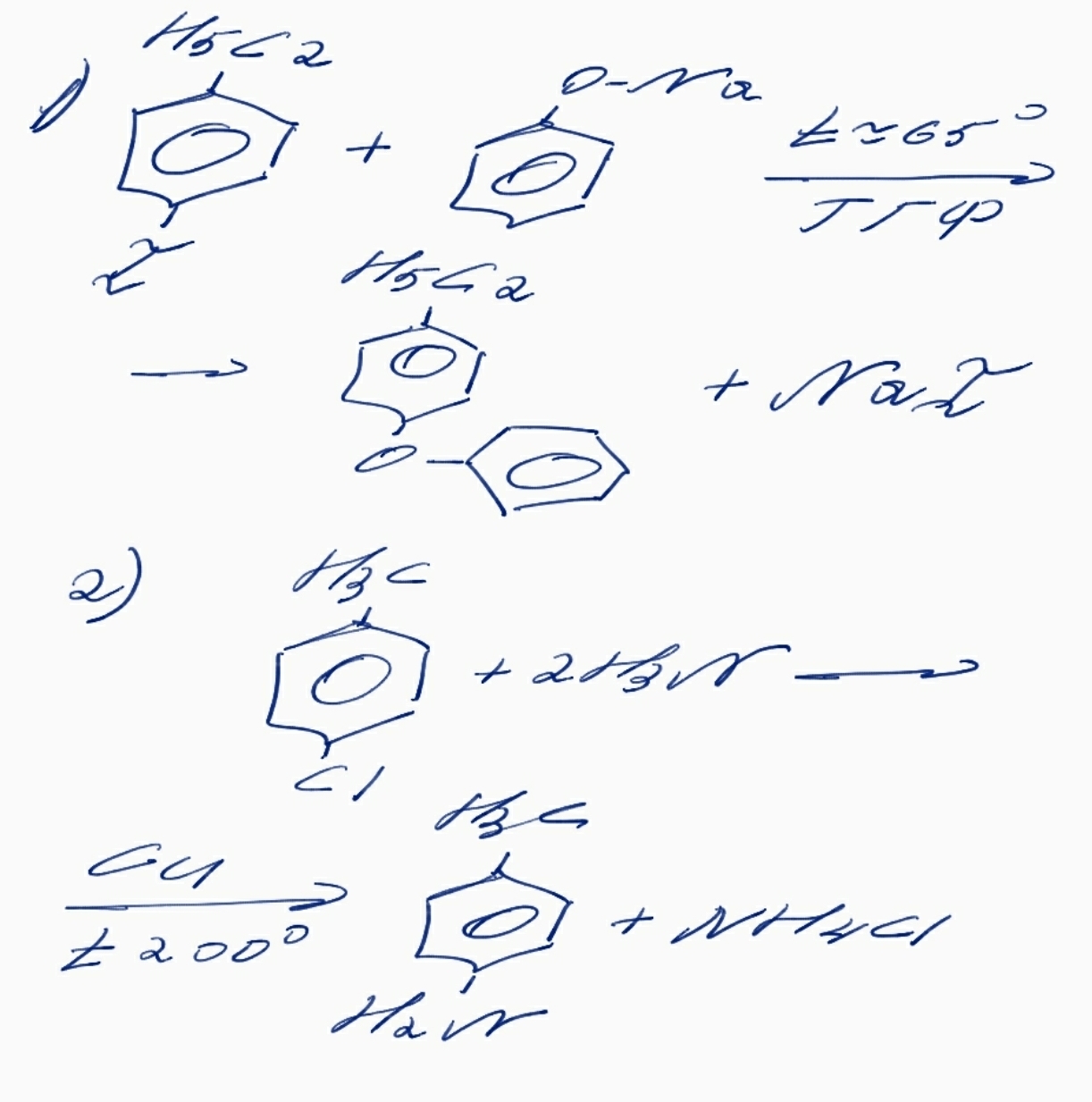 O-алкилирование фенола. t≈65°C. Растворитель диполярный апротонный (диссоциирует без образования H⁺),необходимый для сольватации (связывания) Na⁺.
