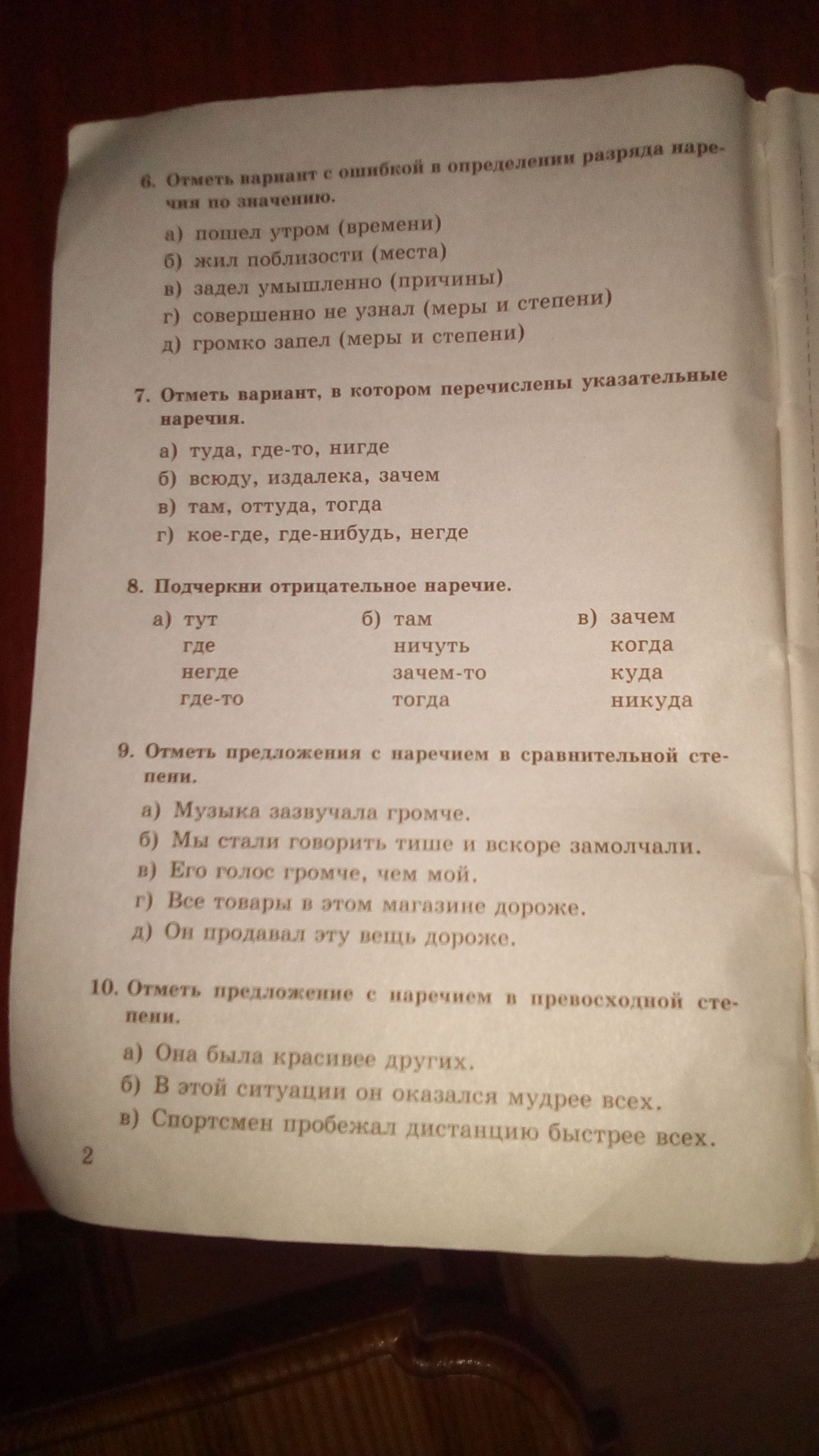 8.негде, ничуть, никуда