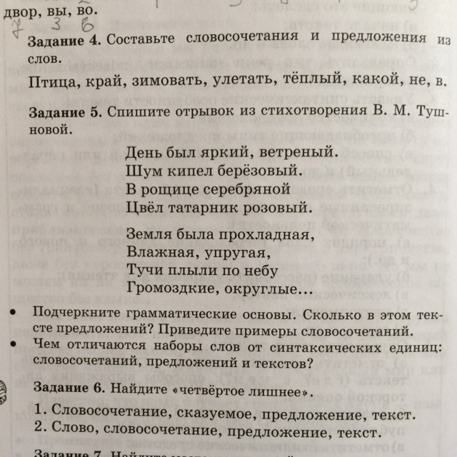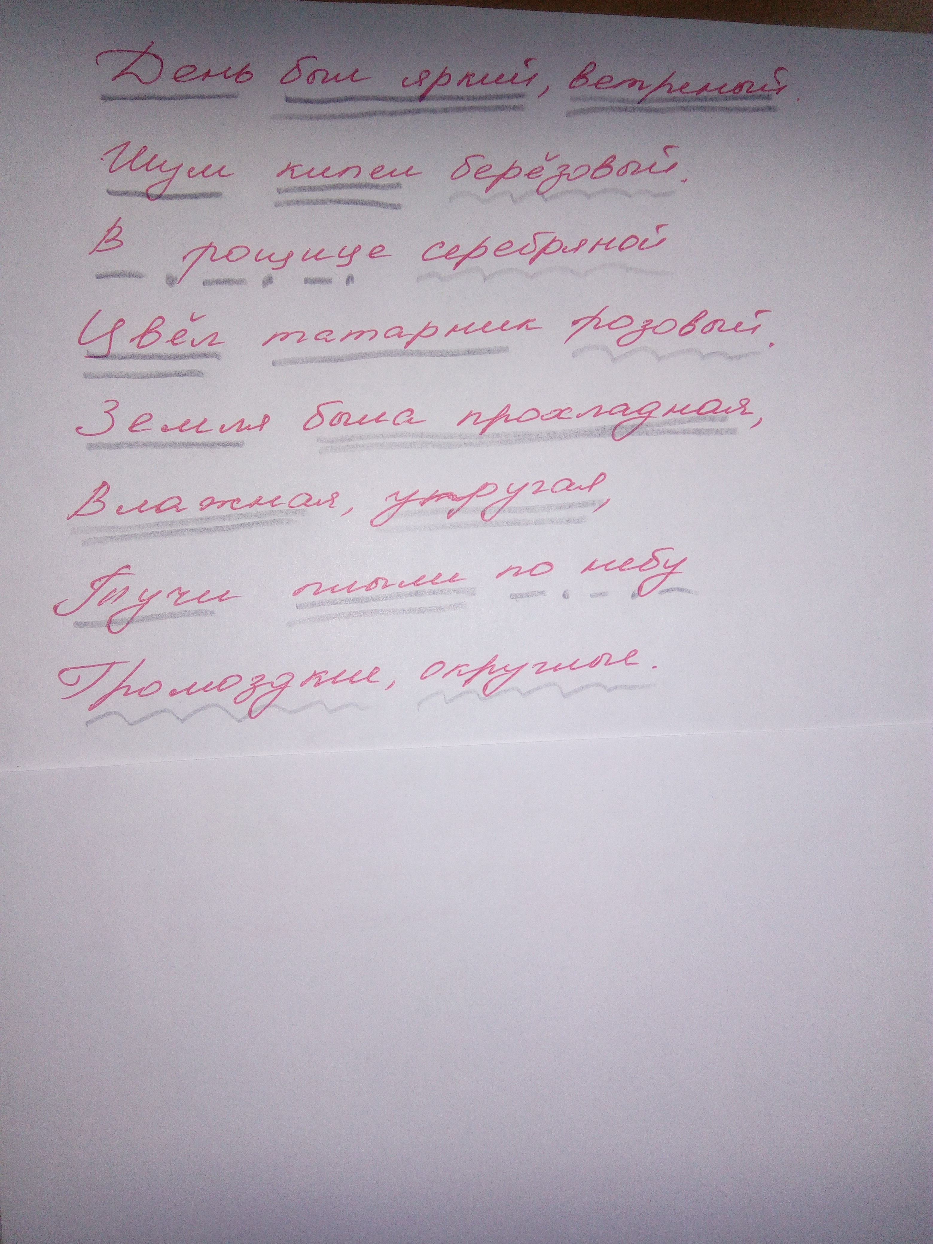 Примеры словосочетаний: березовый шум, розовый татарник,плыли по небу, тучи громоздкие, тучи округлые