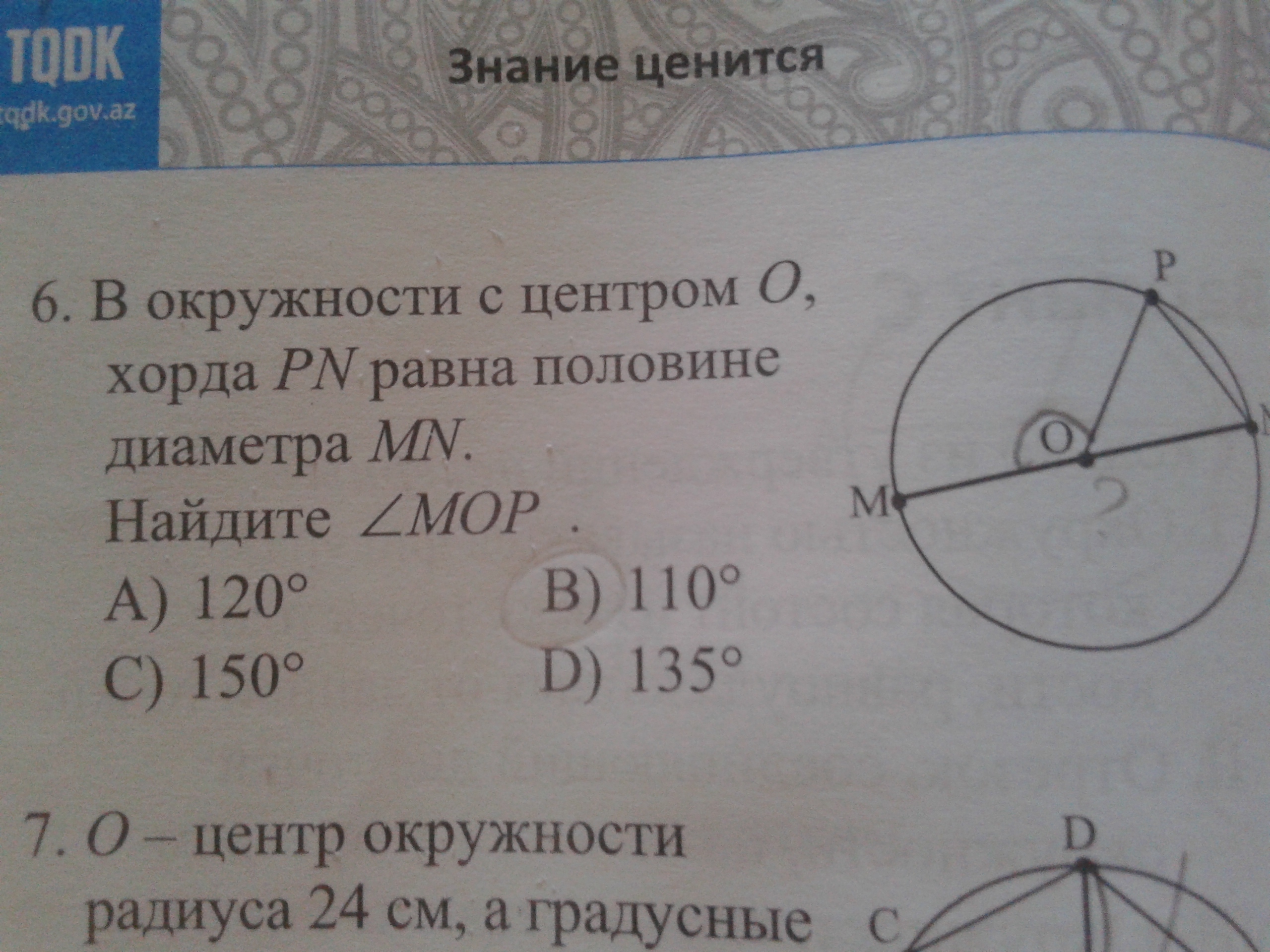 Треугольник PON - равносторонний значит <PON = 60°, <MON - развёрнутый и равен 180° Тогда <MOP = 180 - 60 = 120°