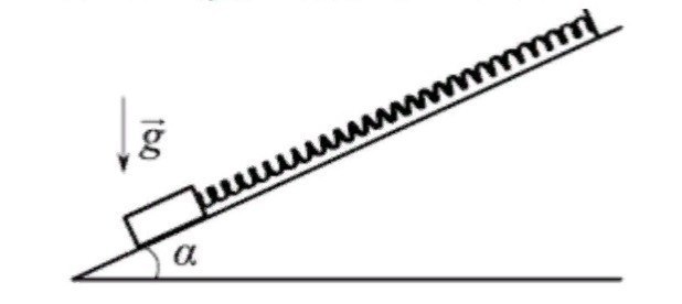 a (cosa = 3/4) с горизонтом, лежит брусок, прикреплённый к лёгкой