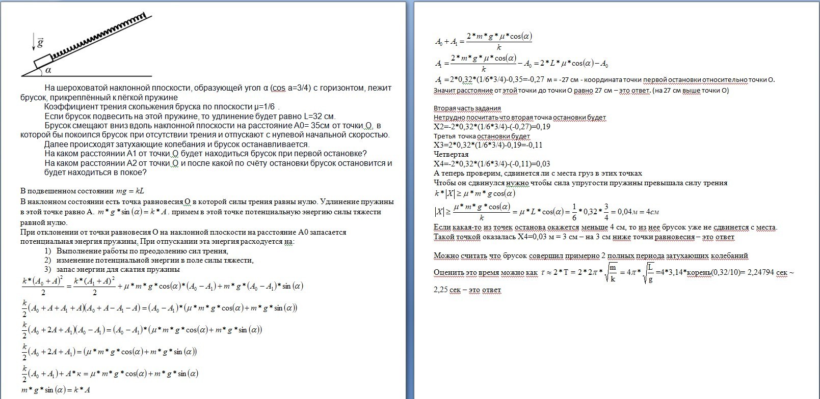 пружине Коэффициент трения скольжения бруска по плоскости мю=1/6. Если брусок подвесить на этой пружине, то удлинение будет равно дельта0=32 см.