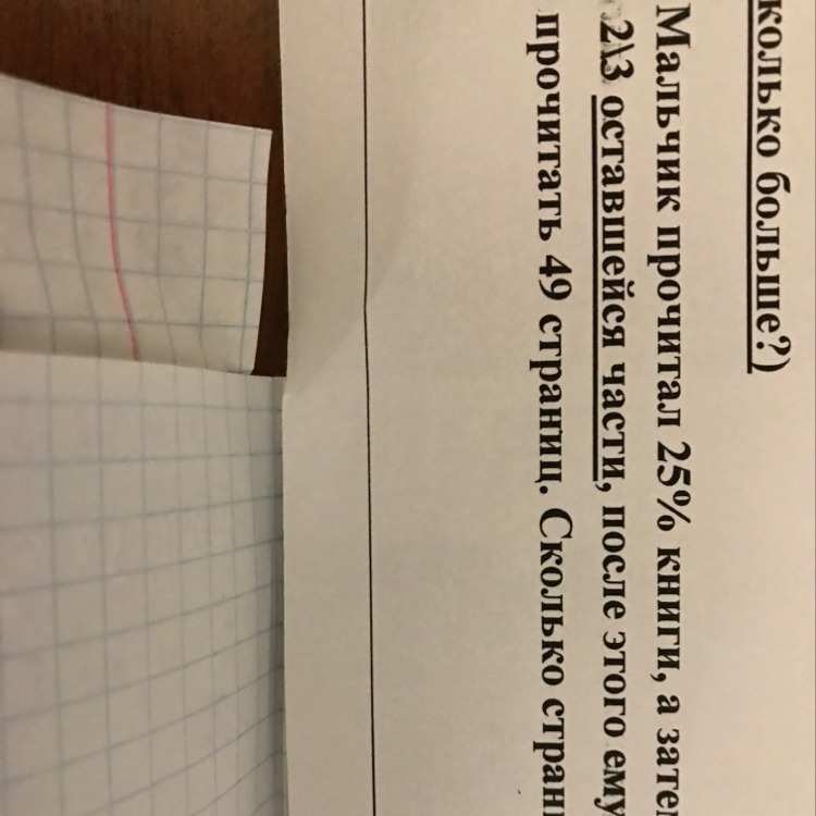 2) Осталось прочитать 100%-25%-50%=25% =49 страниц (по условию)