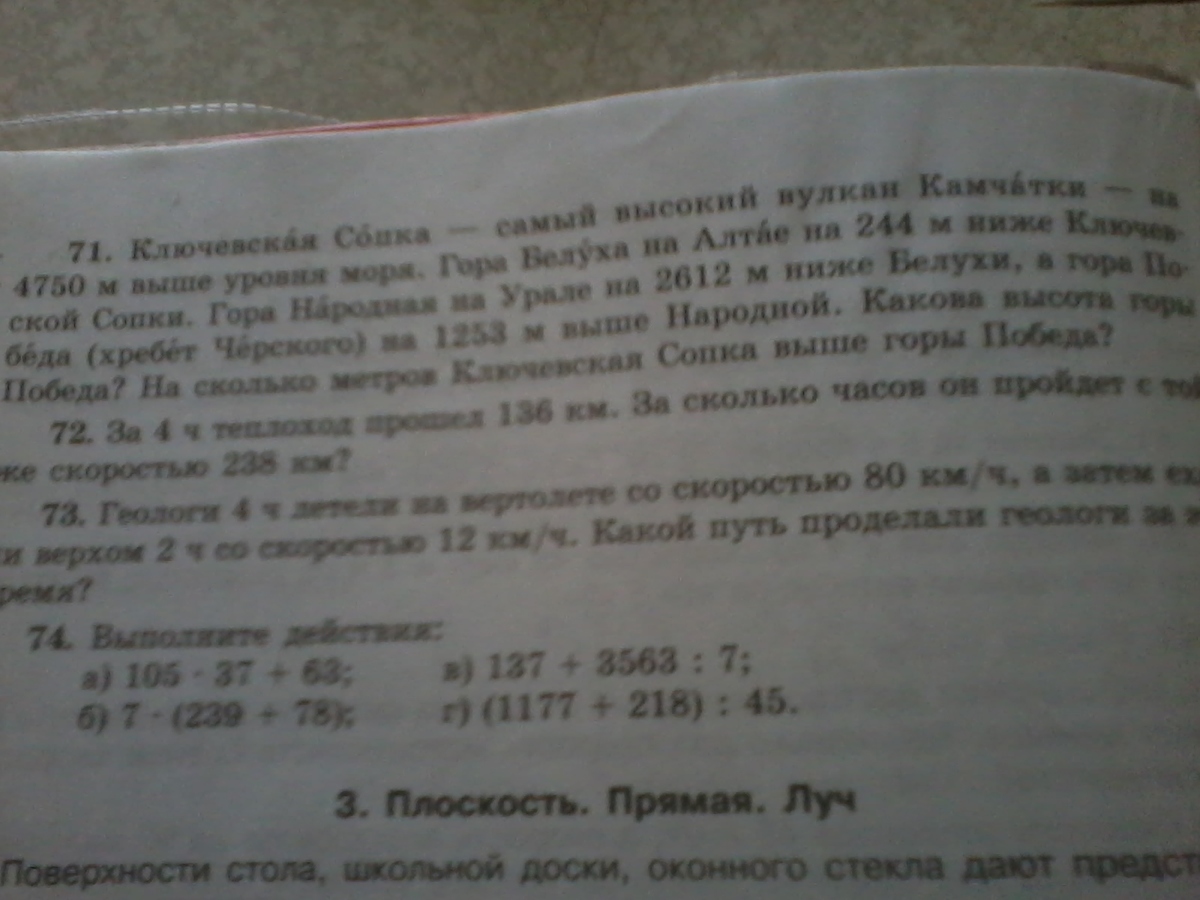 1) 4750-244=4506(м)Высата Белухи 2)4506-2612=1894(м)высота Народной 3)1894+1253=3147(м)высота Победы 4)4750-3147=1603(м)Ключевская Сопка больше Победы