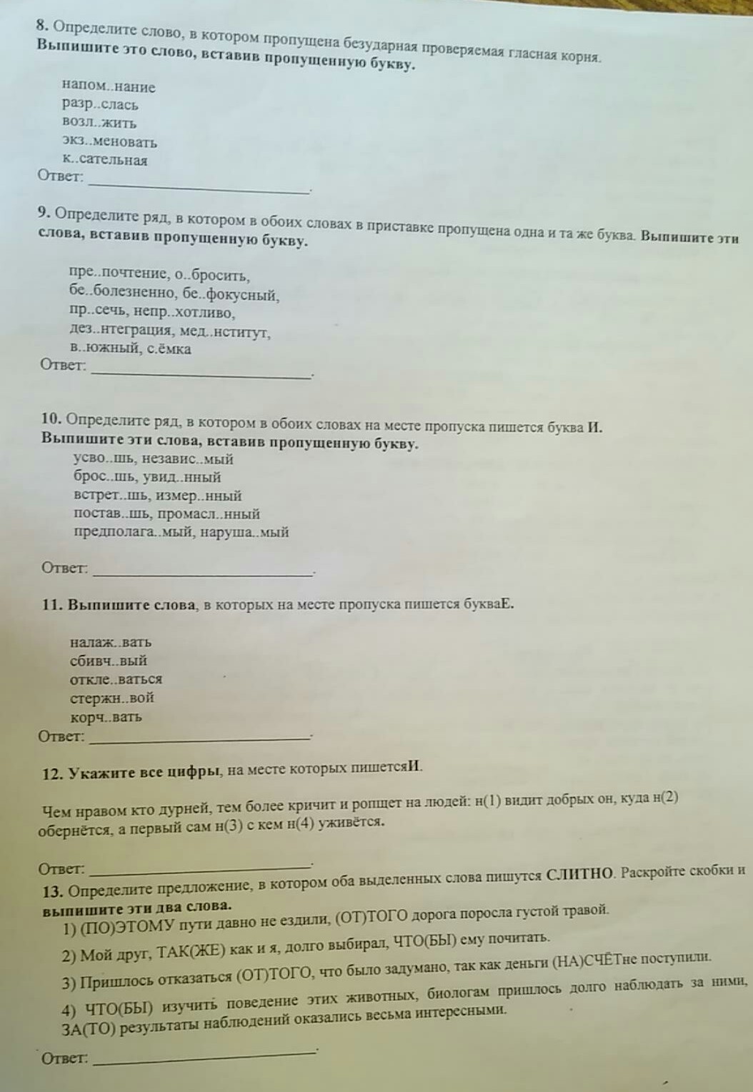 8)экзамен, 9)дезинтеграция, мединститут,10)усвоишь,независимый,11)стержневой,корчевать,12)1;4; 13)2;4.