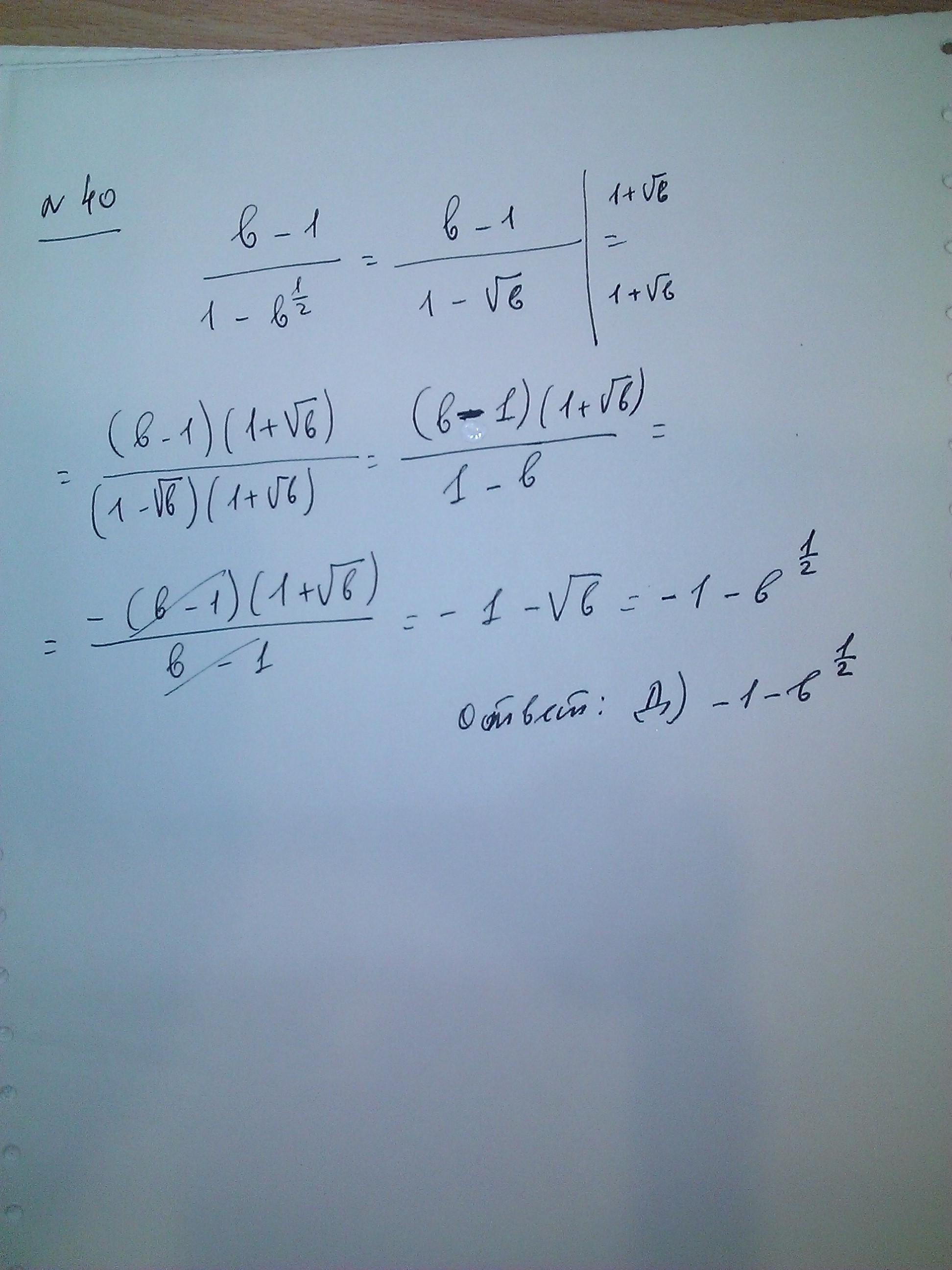 (b-1)/(1-√b)=(√b-1)(√b+1)/(1-√b)=-(√b+1)=-√b-1