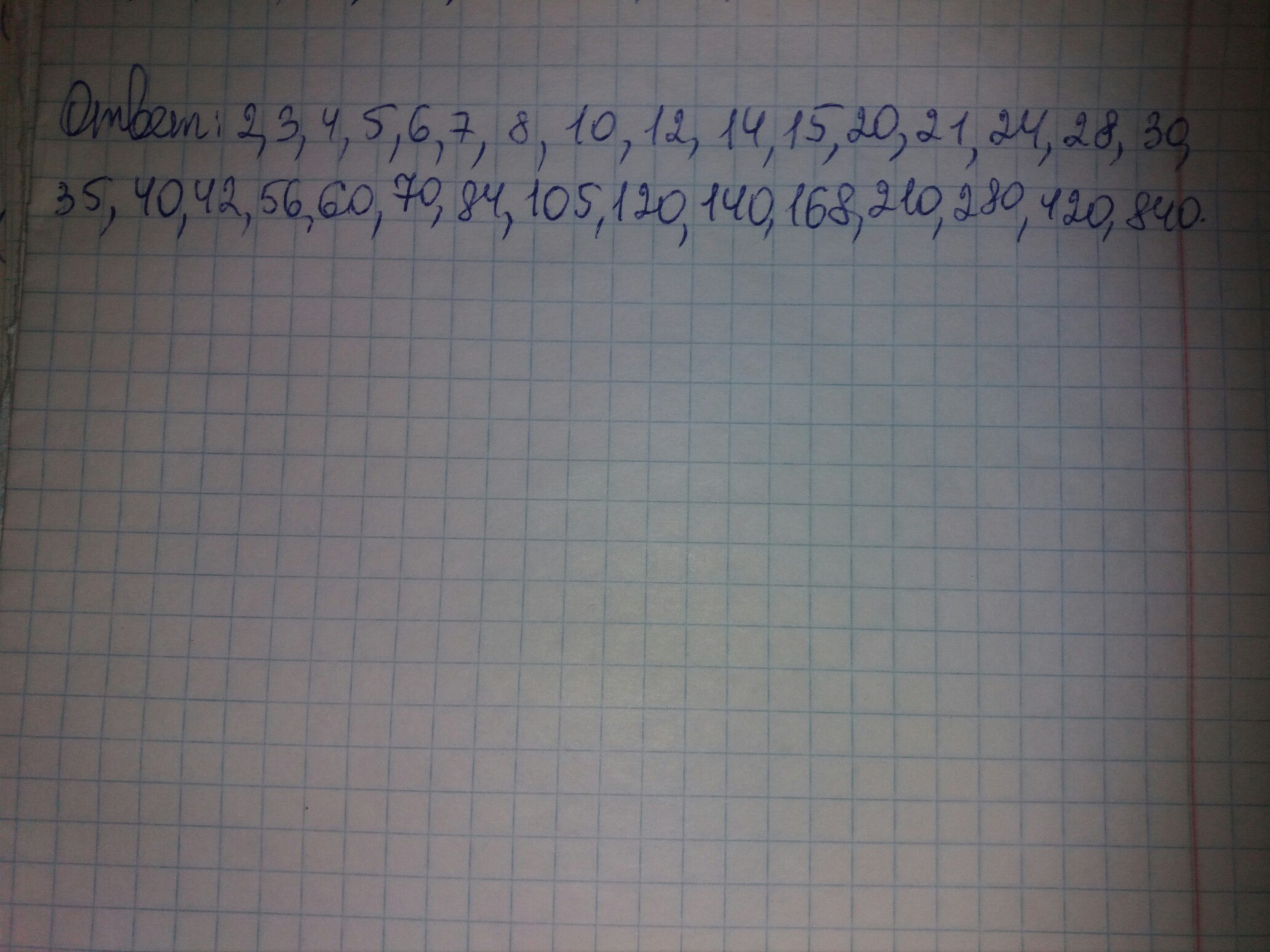 Делители: 2,3,4,5,6,7,8,10,12,14,15,20,21,24,