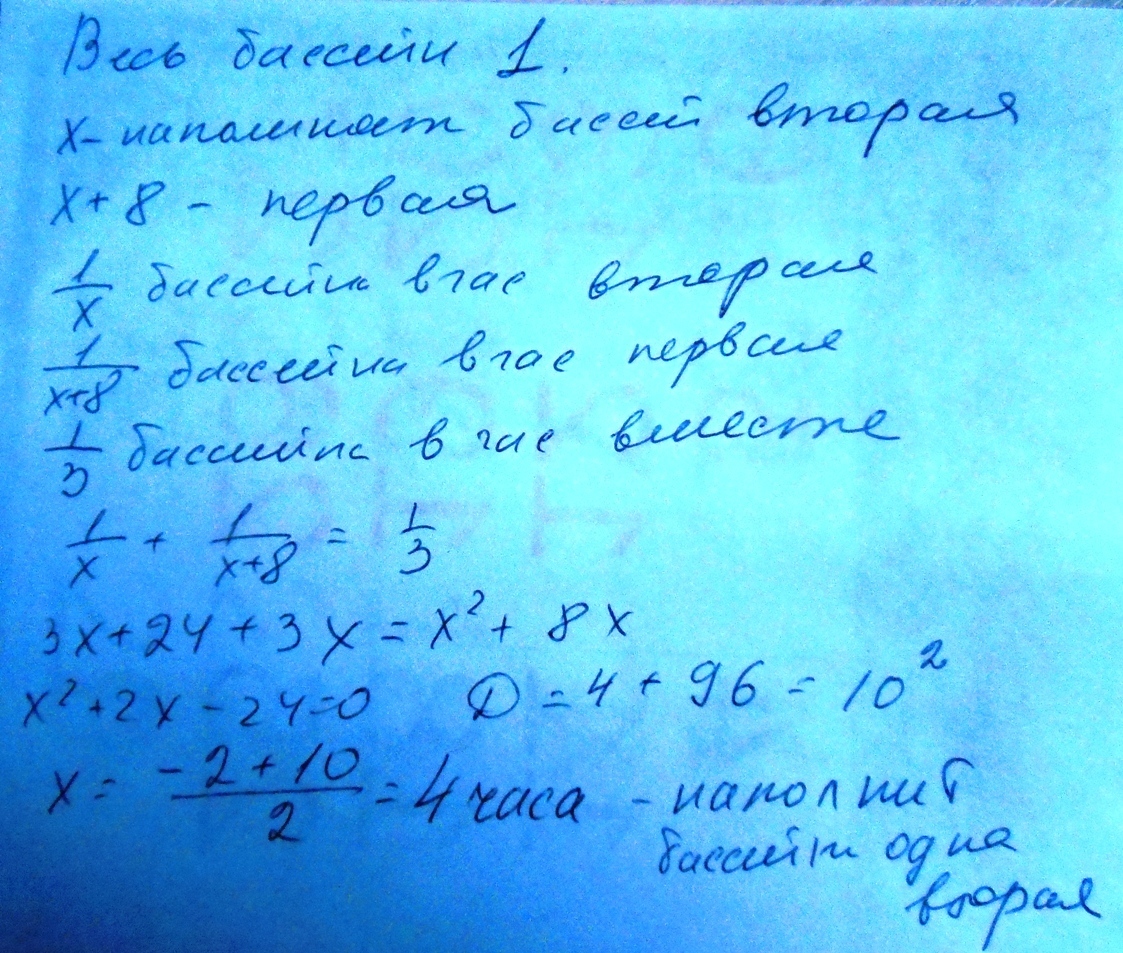 х в час 1 труба,заполнит за 1/хч