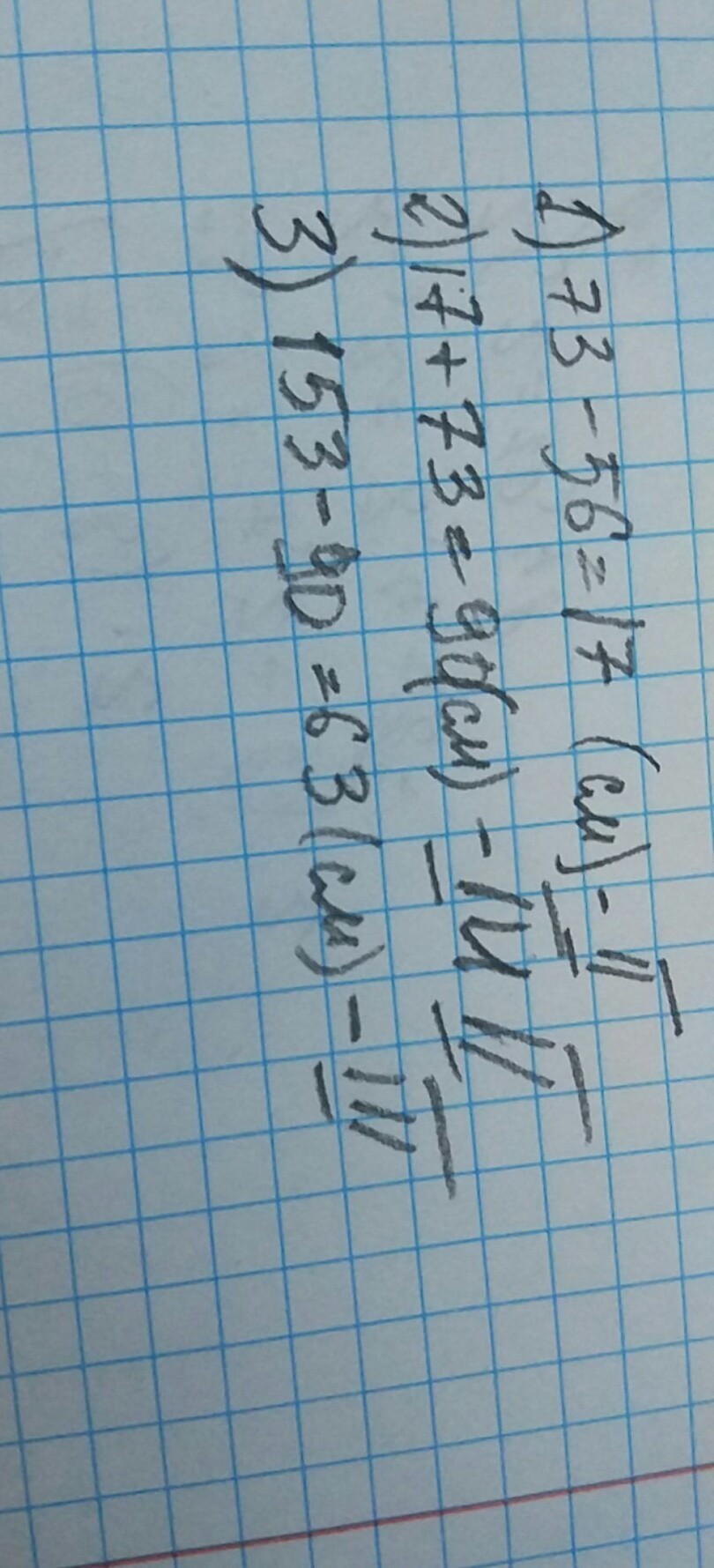 Первая сторона треугольника равна 73, а вторая на 56 см короче за первую. Найдите третью сторону треугольника если его периметр равен 153 см
