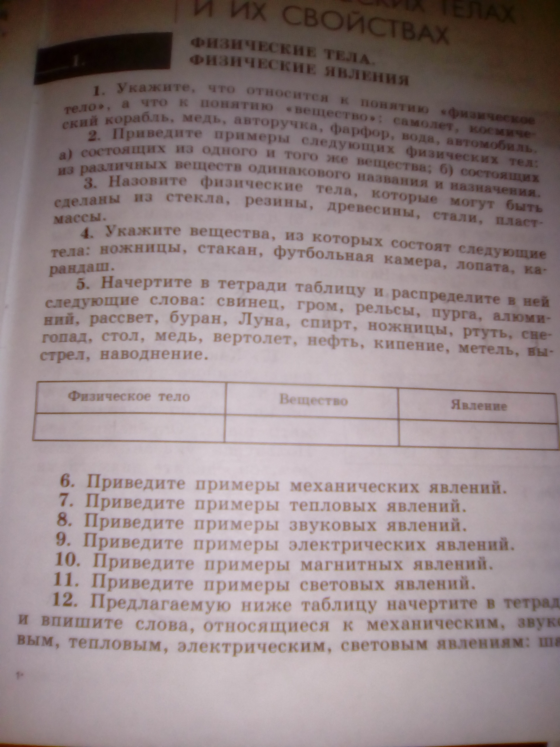 Явление: Гром, пурга, рассвет, луна, снегопад, кипение, метель, выстрел, наводнение.