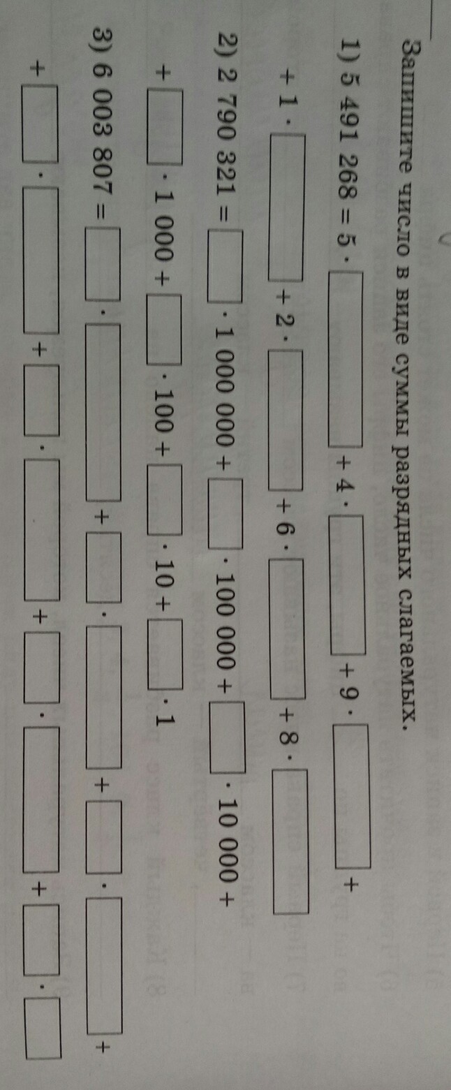 3) 6 003 807 = 6 • 1 000 000 + 3 • 1000 + 8 • 100 + 7 • 1