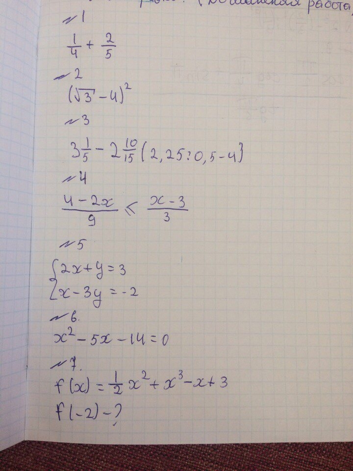 5)из второго выражаем x=-2+3y, подставляем в первое выражение 2(-2+3y)+y=3
