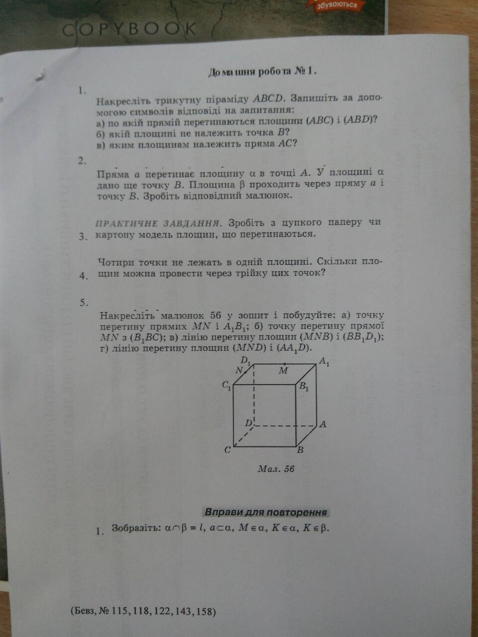 Через прямую (а) и не лежащую на ней точку (В) можно провести плоскость, притом только одну.