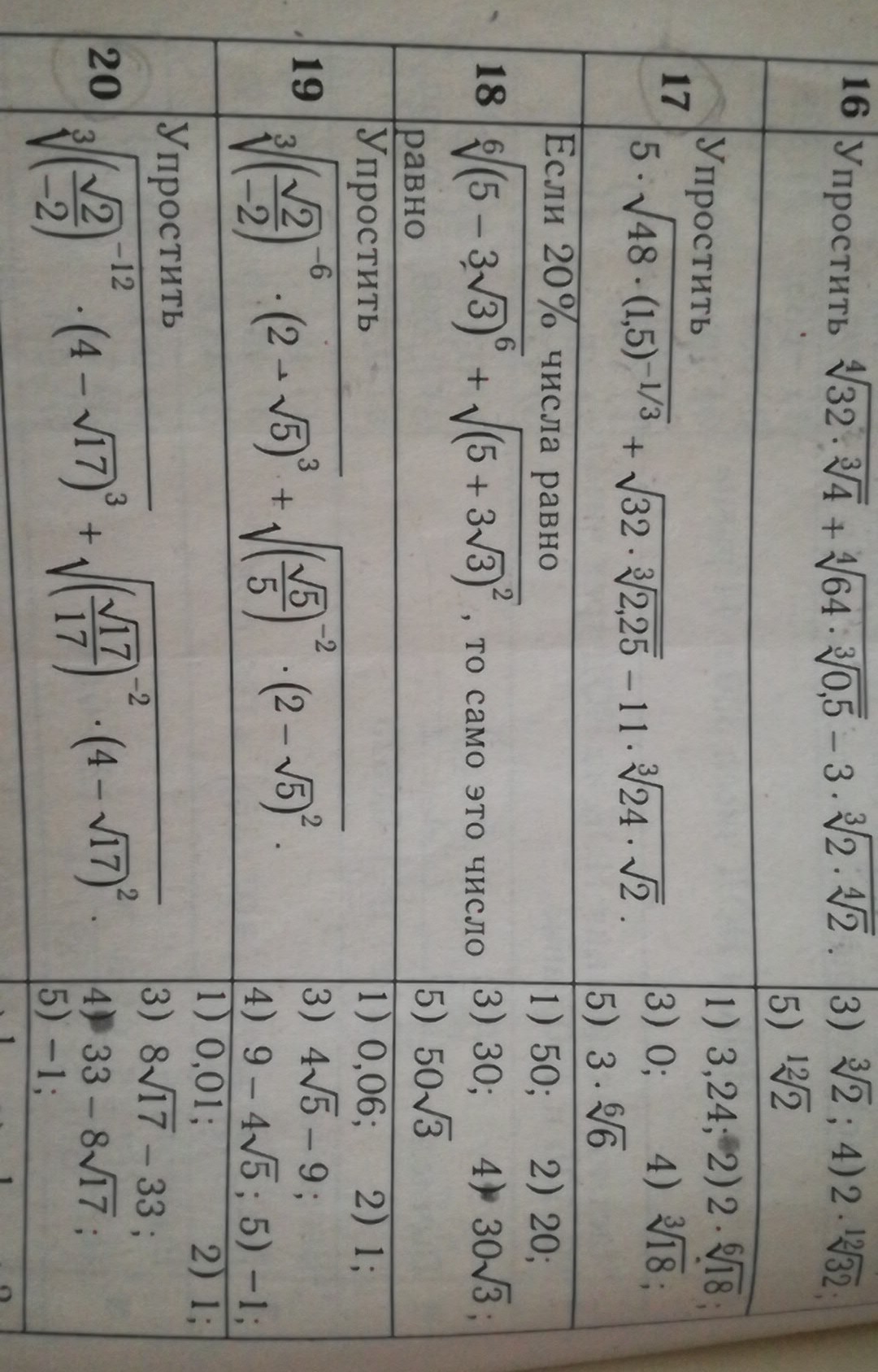 =2cdot3^{frac{1}{3}}cdot2^{frac{1}{6}}=2sqrt[6]{9cdot2}=2sqrt[6]{18}.](https://tex.z-dn.net/?f=5cdotsqrt%7B48cdot%281.5%29%5E%7B-frac%7B1%7D%7B3%7D%7D%7D%2Bsqrt%7B32cdotsqrt%5B3%5D%7B2.25%7D%7D%7D-11sqrt%5B3%5D%7B24cdotsqrt%7B2%7D%7D%3D%5C%0A%3D20sqrt%7B3cdotleft%28frac%7B2%7D%7B3%7Dright%29%5E%7Bfrac%7B1%7D%7B3%7D%7D%7D%2B4sqrt%7B2cdotleft%28frac%7B3%7D%7B2%7Dright%29%5E%7Bfrac%7B2%7D%7B3%7D%7D%7D-22sqrt%5B3%5D%7B3sqrt%7B2%7D%7D%3D%5C%0A%3D20cdot+3%5E%7Bfrac%7B1%7D%7B3%7D%7Dcdot2%5E%7Bfrac%7B1%7D%7B6%7D%7Dcdot%2B4cdot2%5E%7Bfrac%7B1%7D%7B6%7D%7Dcdot3%5E%7Bfrac%7B1%7D%7B3%7D%7D-22%5Ecdot3%5E%7Bfrac%7B1%7D%7B3%7D%7Dcdot2%5E%7Bfrac%7B1%7D%7B6%7D%7D%3D%5C%0A%3D2cdot3%5E%7Bfrac%7B1%7D%7B3%7D%7Dcdot2%5E%7Bfrac%7B1%7D%7B6%7D%7D%3D2sqrt%5B6%5D%7B9cdot2%7D%3D2sqrt%5B6%5D%7B18%7D.)