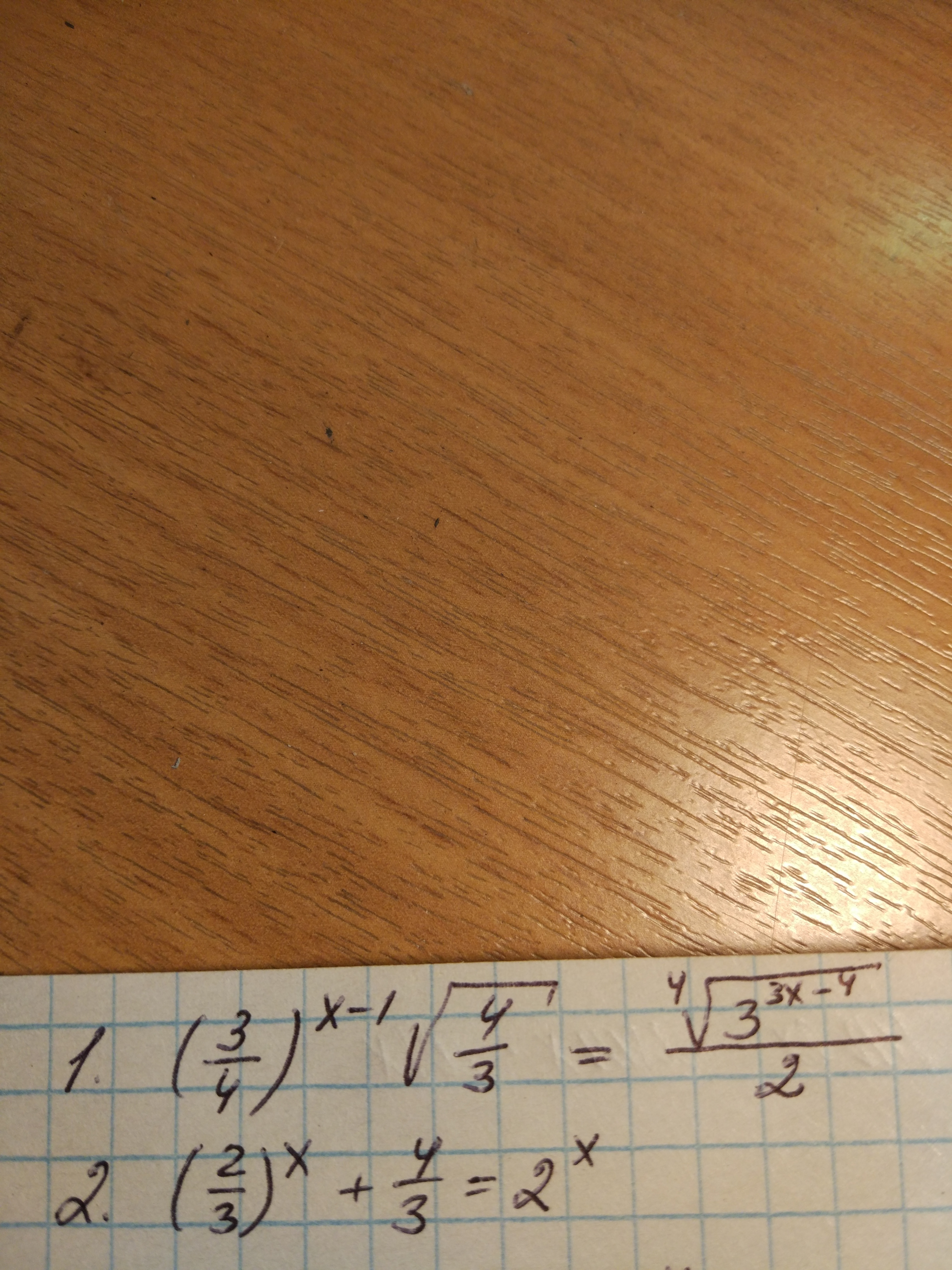 3^{frac{x-2}{4}}=4^{-x+1}.](https://tex.z-dn.net/?f=left%28frac%7B3%7D%7B4%7Dright%29%5E%7Bx-1%7Dsqrt%7Bfrac%7B4%7D%7B3%7D%7D%3Dfrac%7Bsqrt%5B4%5D%7B3%5E%7B3x-4%7D%7D%7D%7B2%7D%3B%5C%0Aleft%28frac%7B3%7D%7B4%7Dright%29%5E%7Bx-1%7Dcdotleft%28frac%7B3%7D%7B4%7Dright%29%5E%7B-frac%7B1%7D%7B2%7D%7D%3D3%5Efrac%7B3x-4%7D%7B4%7Dcdotfrac%7B1%7D%7B2%7D%3B%5C%0Aleft%28frac%7B3%7D%7B4%7Dright%29%5E%7Bx-frac%7B3%7D%7B2%7D%7D%3D3%5Efrac%7B3x-4%7D%7B4%7Dcdot2%5E%7B-1%7D%3B%5C%0A3%5E%7Bfrac%7B2x-3%7D%7B2%7D-frac%7B3x-4%7D%7B4%7D%7D%3D2%5E%7B-1-2x%2B3%7D%3B%5C%0A3%5E%7Bfrac%7Bx-2%7D%7B4%7D%7D%3D4%5E%7B-x%2B1%7D.)