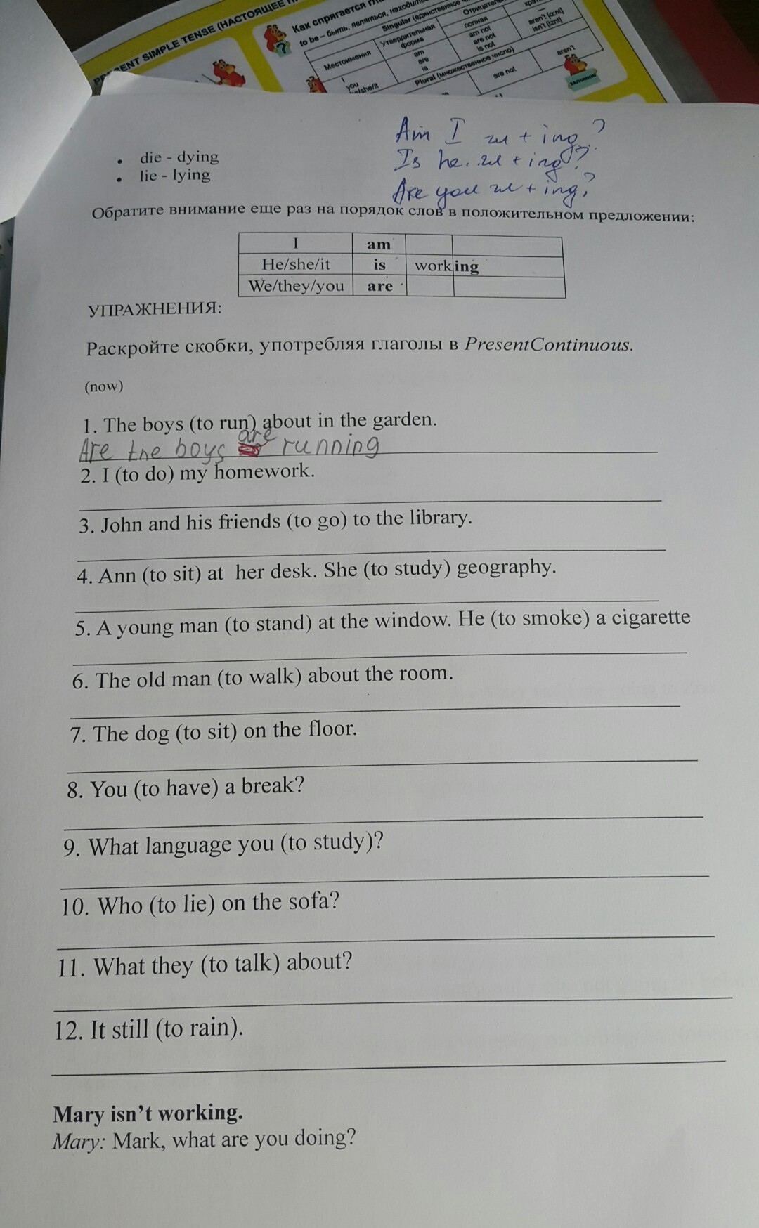 4)Ann is sittinq,She is studyinq