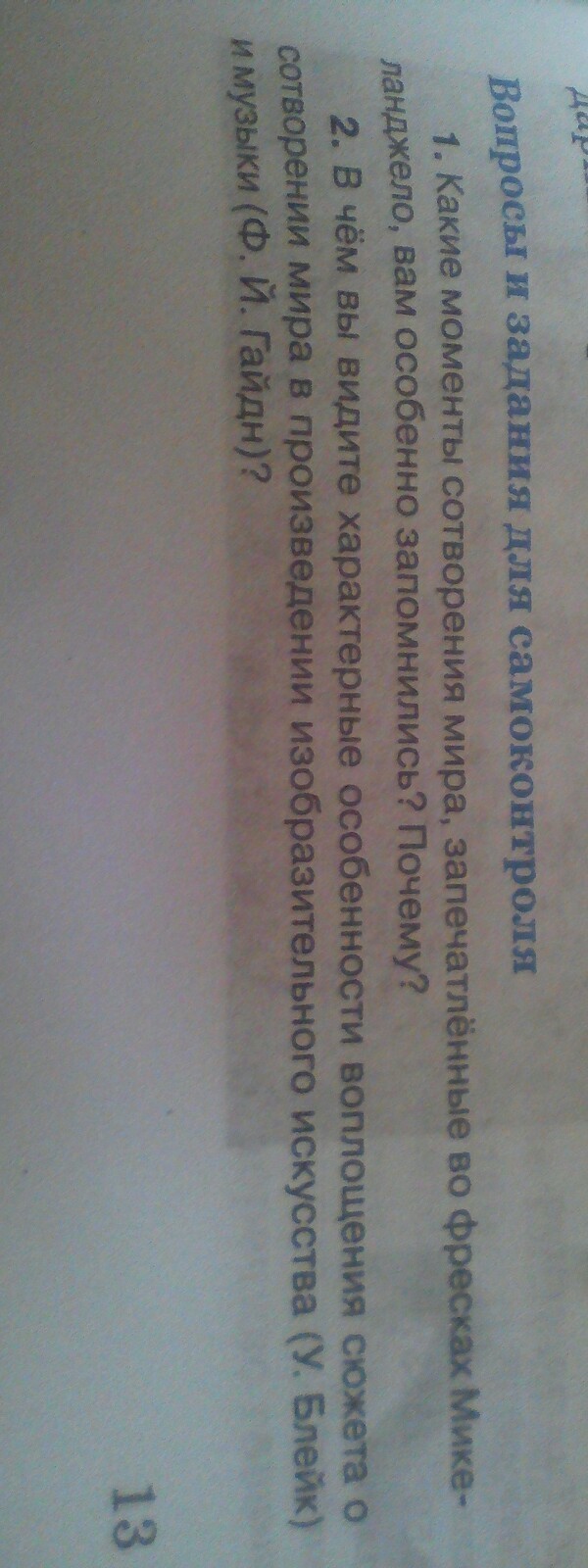 1) Обратимся к замечательным фрескам Микеланджело в Сикстинской капелле. И до него художники часто использовали сюжет сотворения Адама. Они изображали создание человека Богом из земной пыли, из небытия, хаоса, подчёркивая его чудесное начало. У Микеланджело этот сюжет получает совсем иное звучание. Его фреска — гимн неиссякаемым творческим возможностям человека.