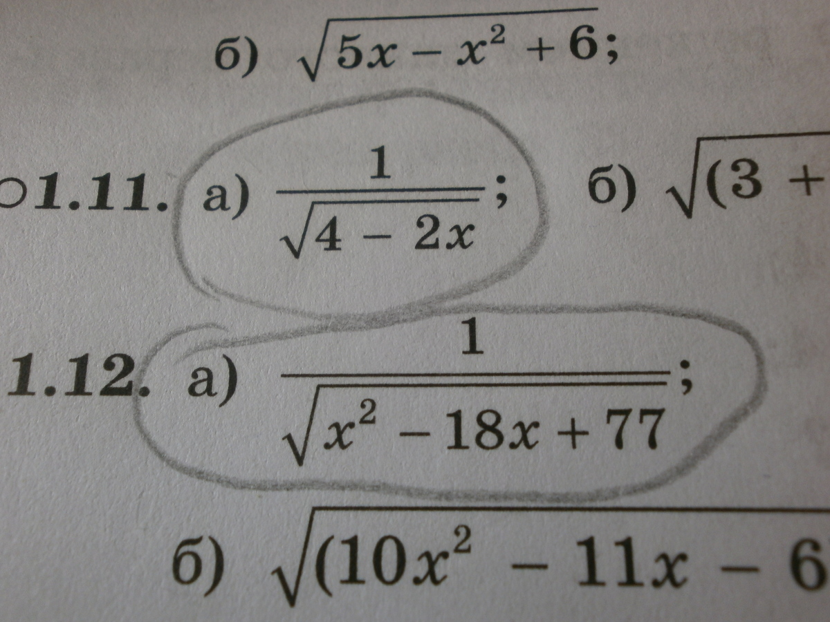 Помогите пожалуйста! :) Выражения обведены. Задание: Найдите область определения выражения f(x)
