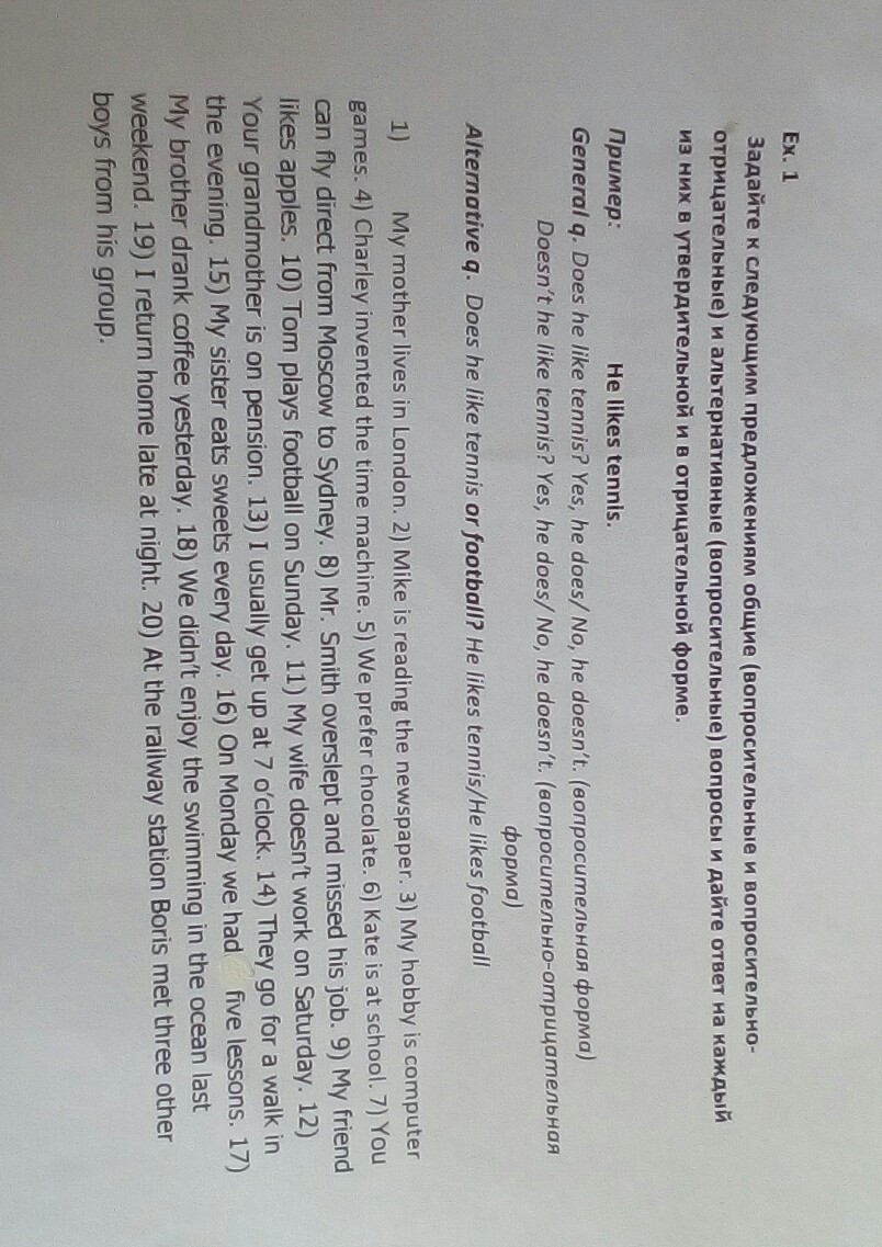 1) Does/Doesn't your mother live in London? Yes, she does/ No she doesn't