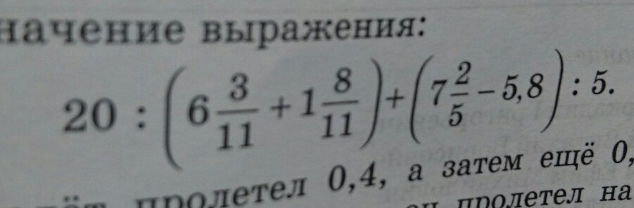 20:(6³/₁₁+1⁸/₁₁)+(7²/₅-5,8):5