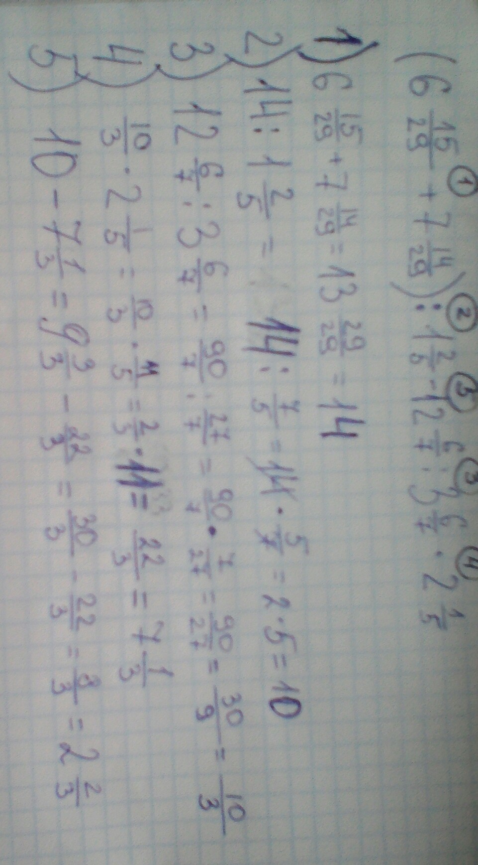 1 пример) 6 15/29 +7 14/29= 13 29/29= 14 если знаменатели одинаковые мы просто складываем целое число с целым , числитель с числителем, но знаменатель остаётся пржежнем
