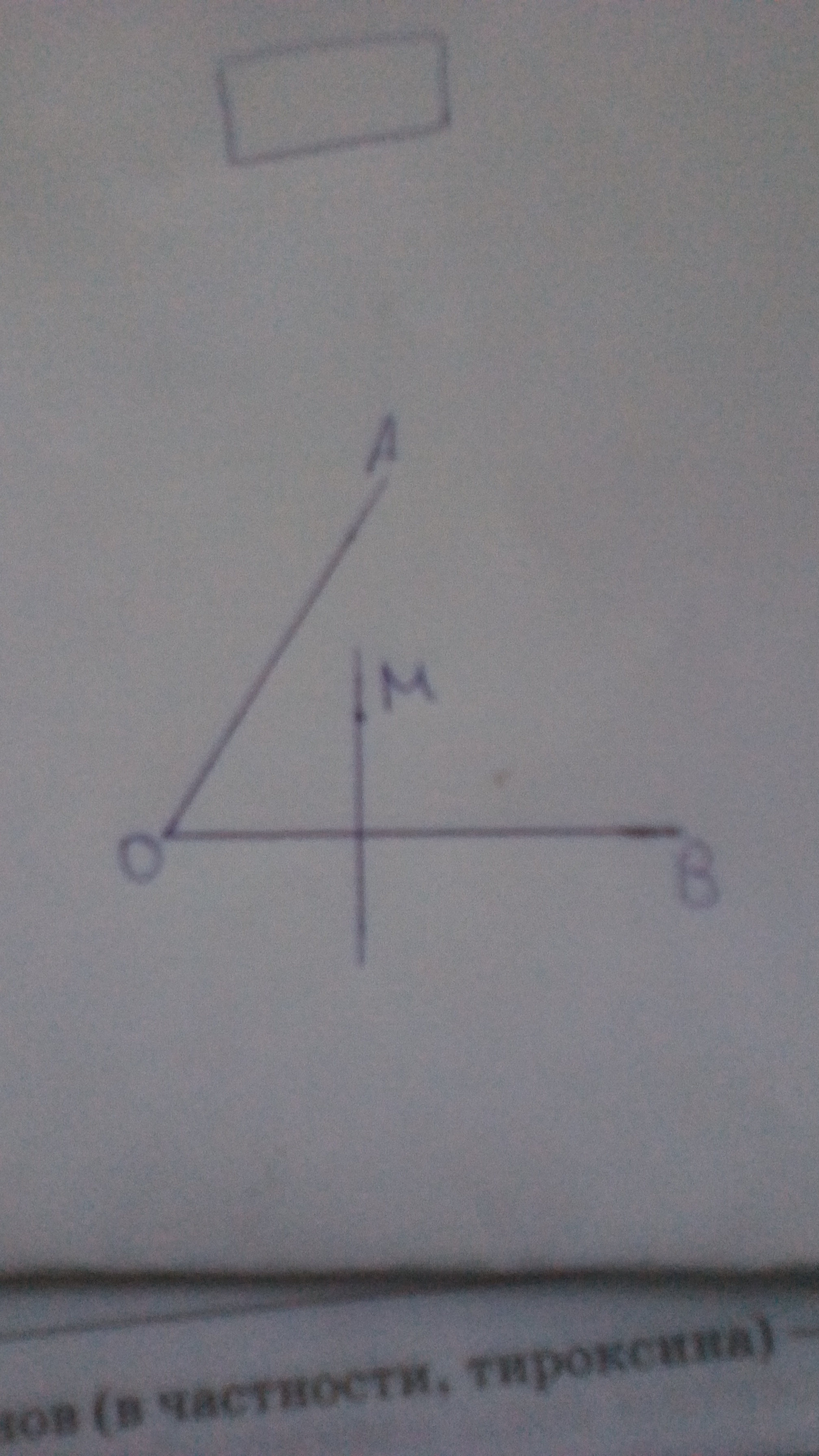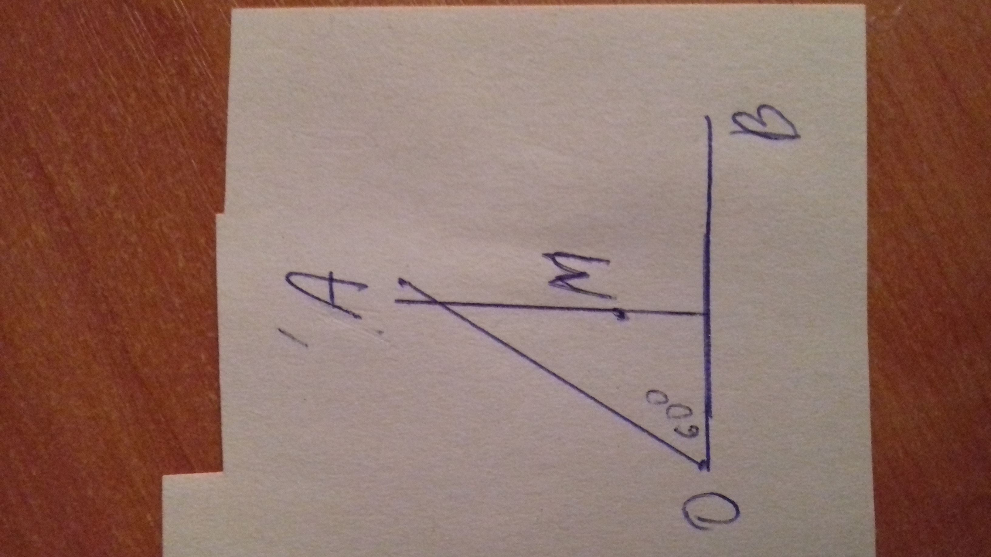 Постройте угол AOB,градусная мера которого равна 60°.Отметьте точку M внутри угла.Через эту точку проведите прямую,перпендикулярную стороне OB угла AOB.