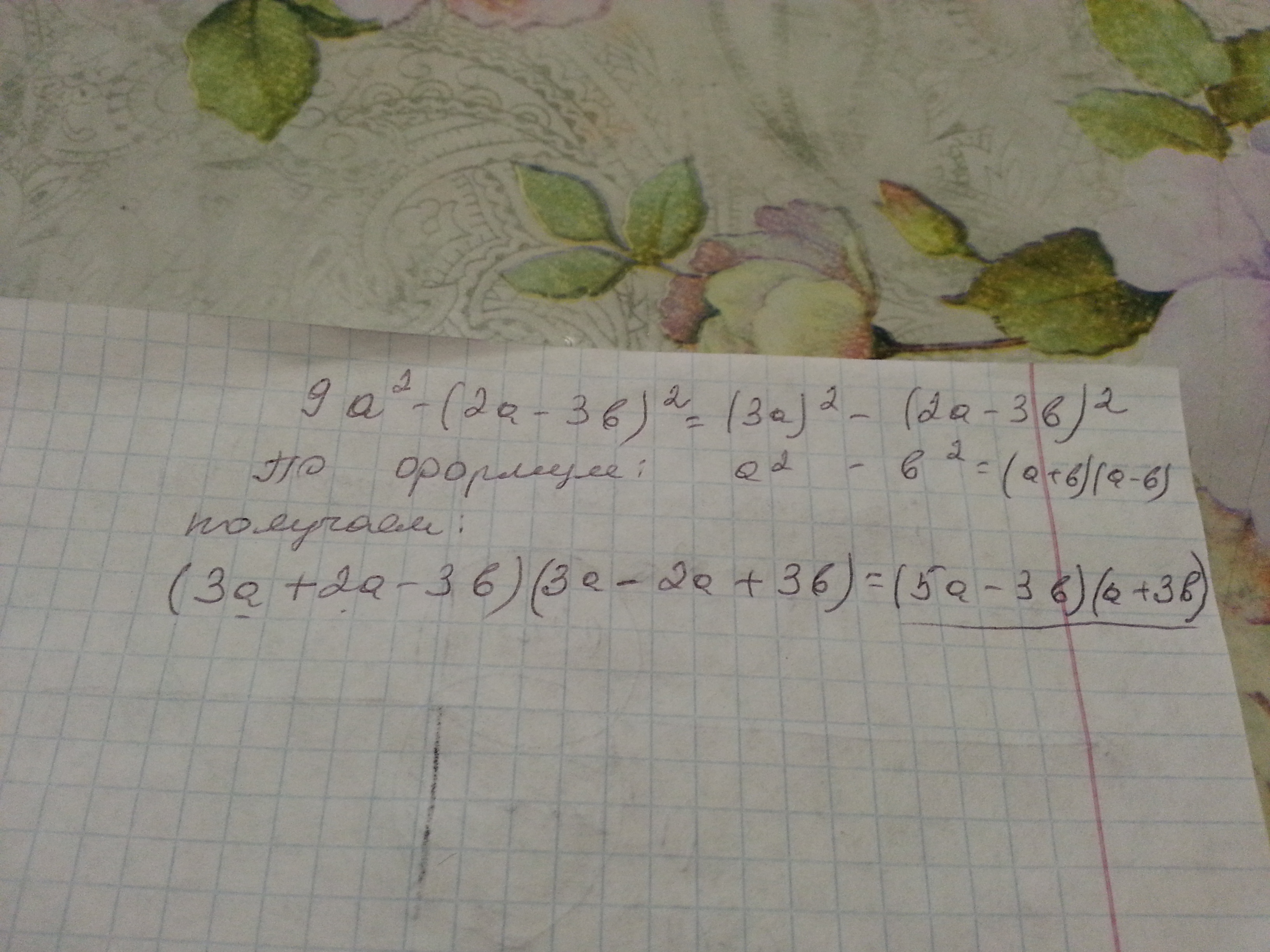 Решите пожалуйста !!!Срочно!!! Разложите алгебраическое выражение 9a^2-(2a-3b)^2 на множители !!!