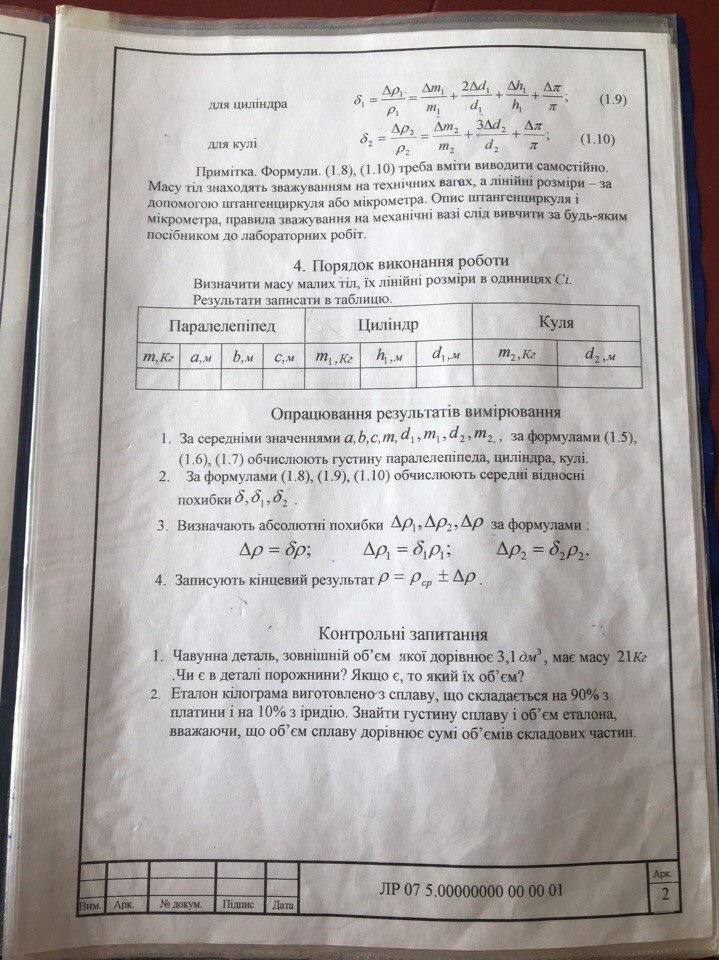 Маса, густина і об'єм сплаву (еталона): m, ρ, V.