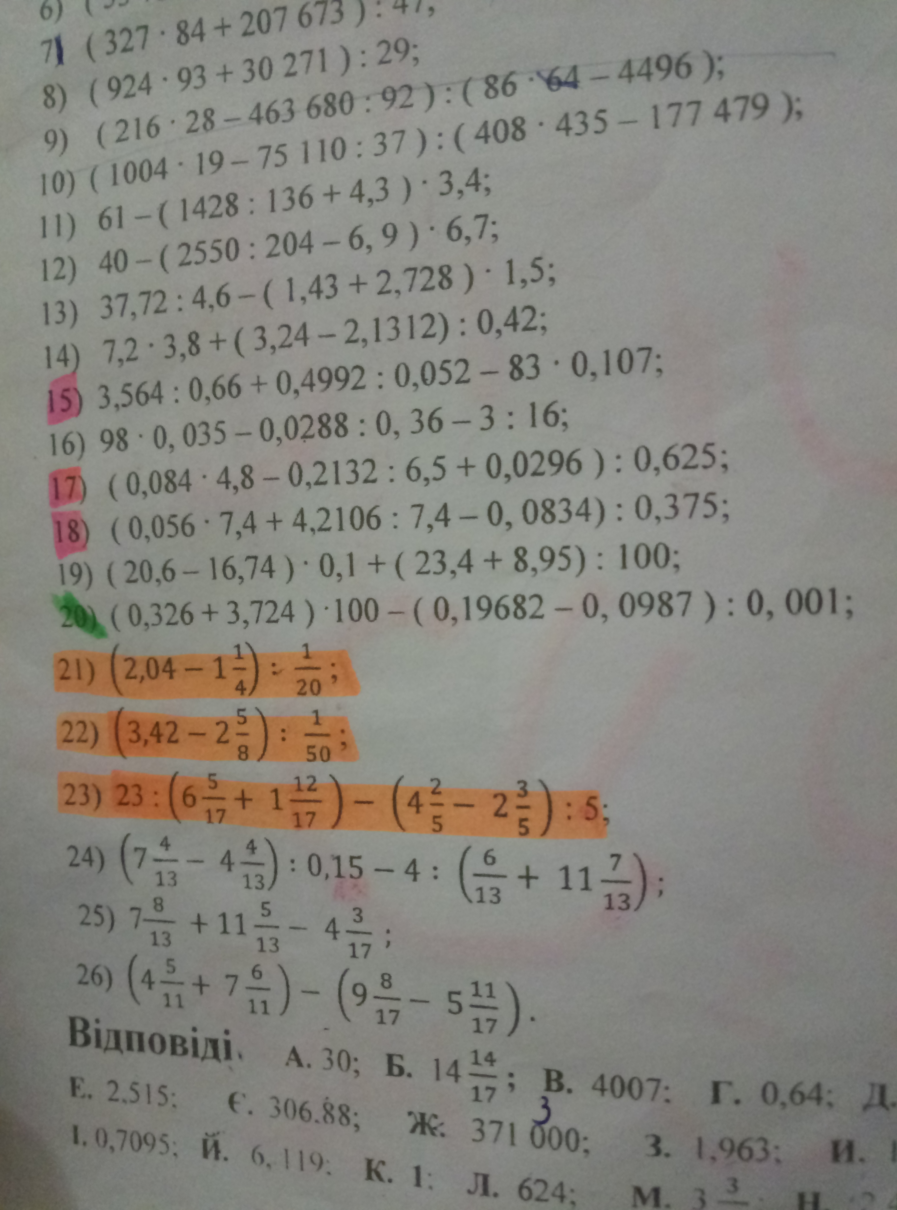 23) =23 : 8 - 1,8 : 5 = 2,875-0,36=2,515