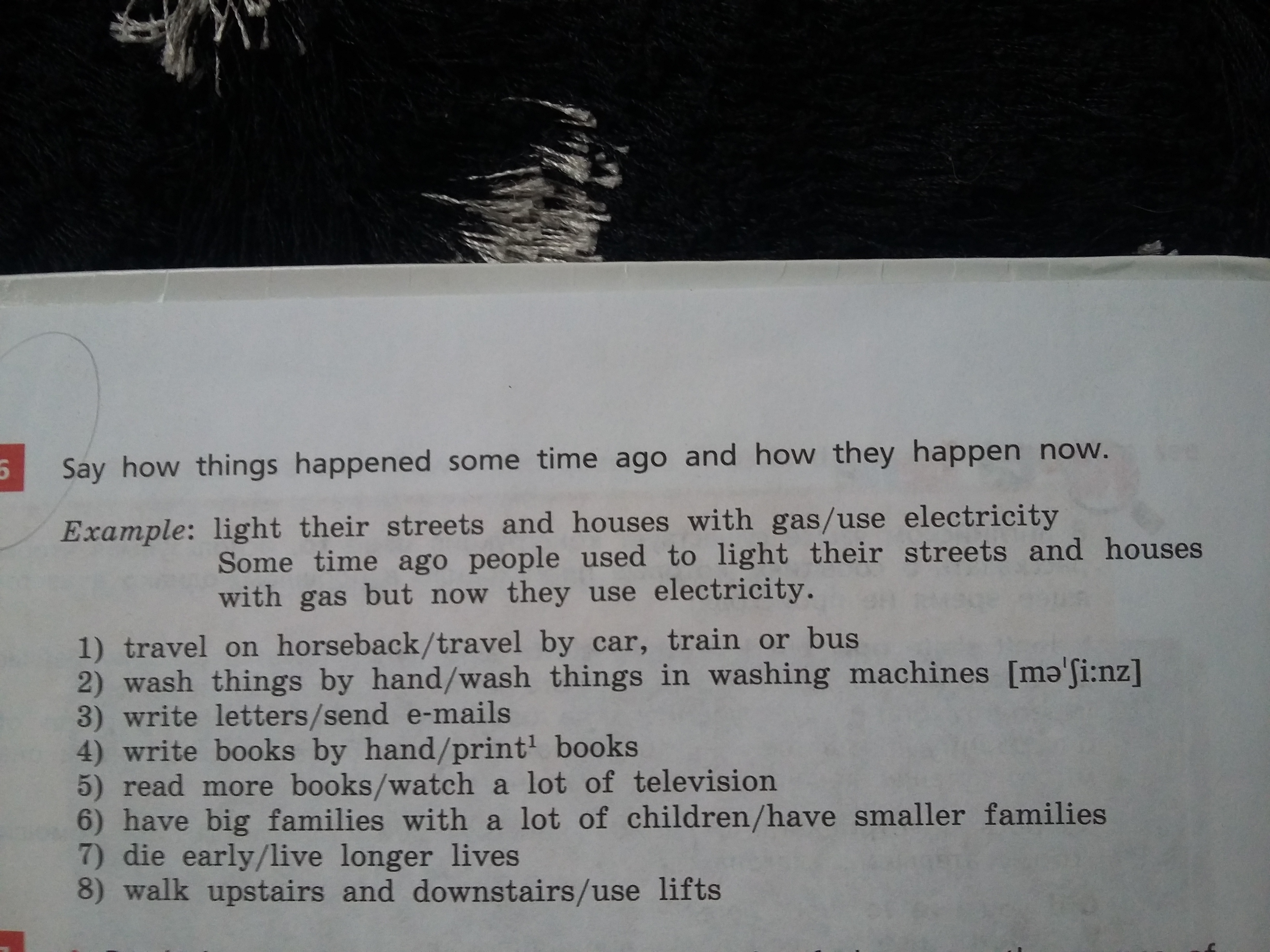 2) some time ago people washed things by hand but now they wash things in washing machine