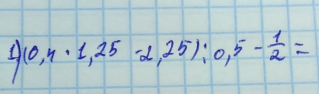 (0,4*1,25-2,25):0,5-1/2=(0,5-2,25):0,6-0,5=-1,75:0,5-0,5=-3,5-0,5=-4.