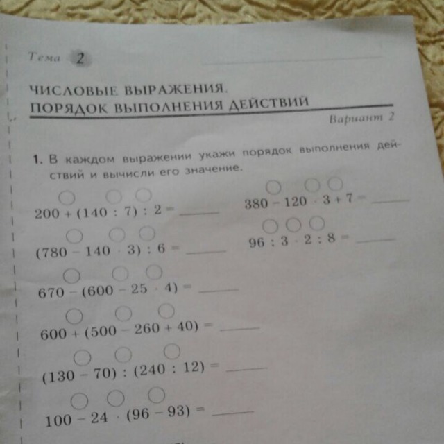 В каждом выражении укажи порядок выполнения действий и вычисли его значение